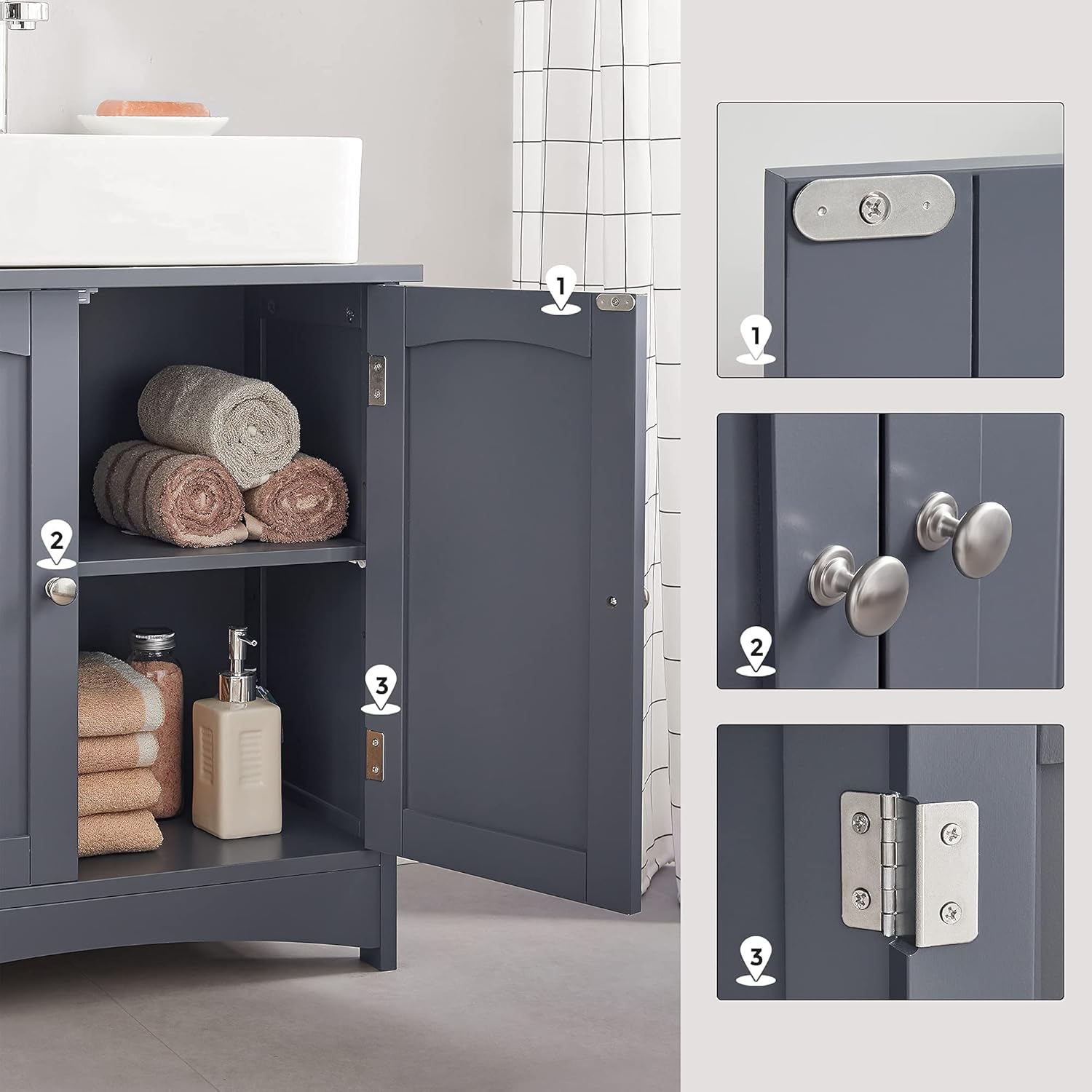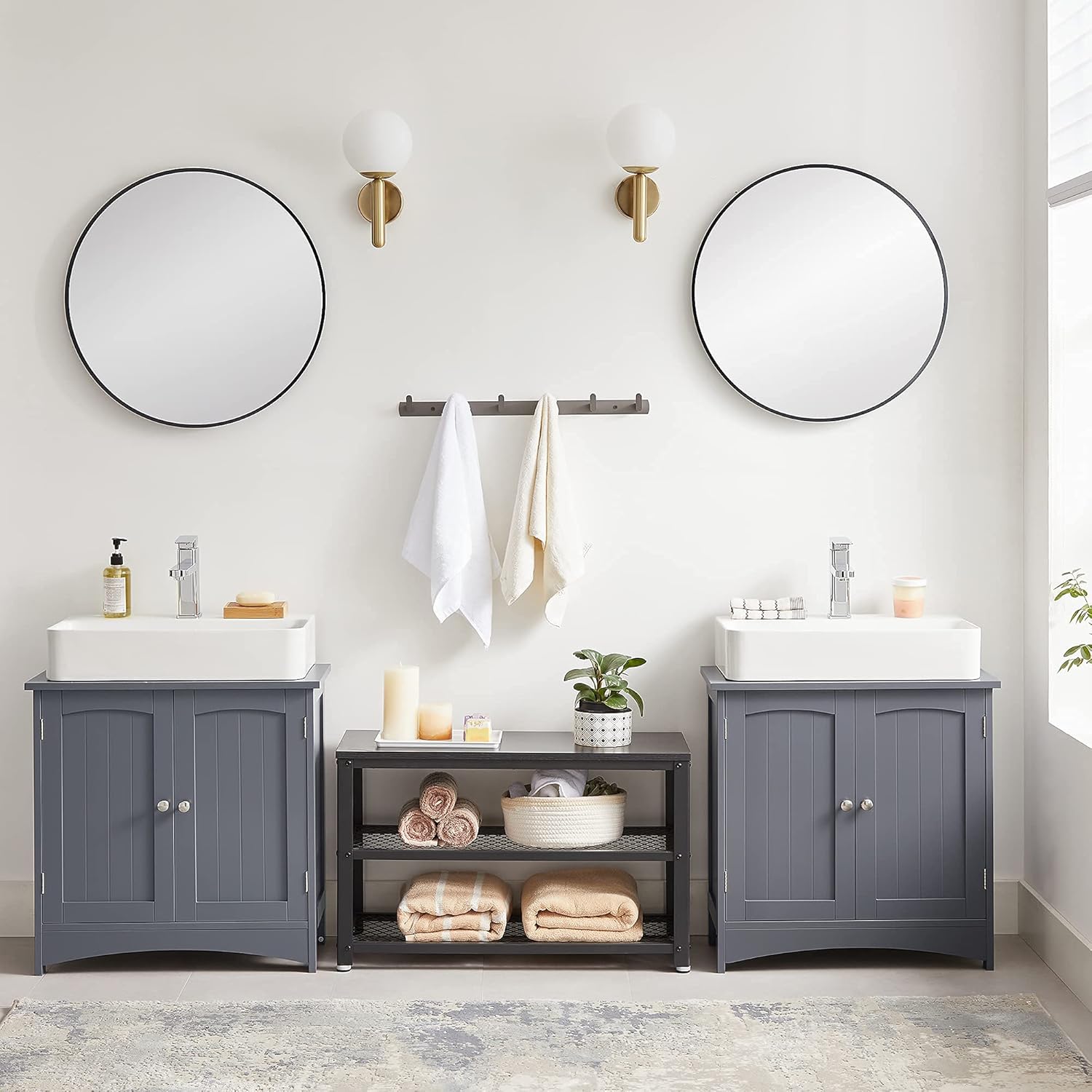 VASAGLE BBC001G01 Шкаф за мивка с 2 врати, Шкаф за баня, Регулируем рафт, Много място за съхранение, Свободно стоящ, Стил селска къща, 60 x 30 x 60 см, Сив