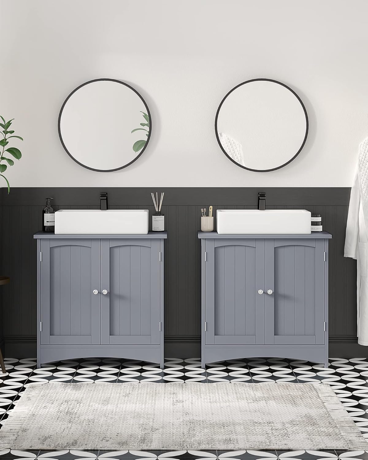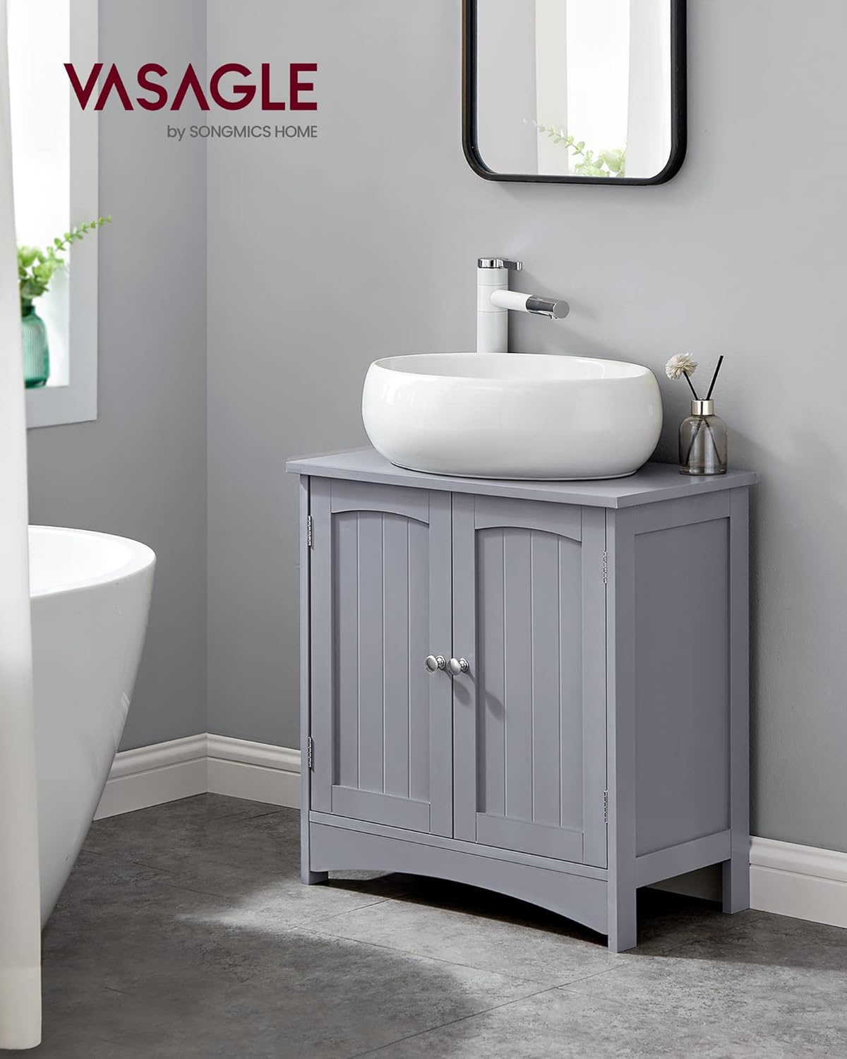 VASAGLE BBC001P36 Шкаф за баня 30 x 60 x 60 см 2 врати Шкаф за баня с регулируема височина и рафт, мистично сив