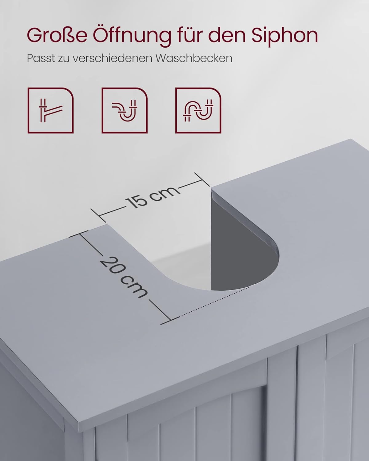 • Перфектен размер за ваше щастие: Размер на отвора на сифона: 20 x 15 см. Размер на шкафа: 60 ​​x 30 x 60 см (Д x Ш x В). Преди да поръчате, моля, измерете размера на вашия сифон и мивка, за да се уверите, че този шкаф пасва.