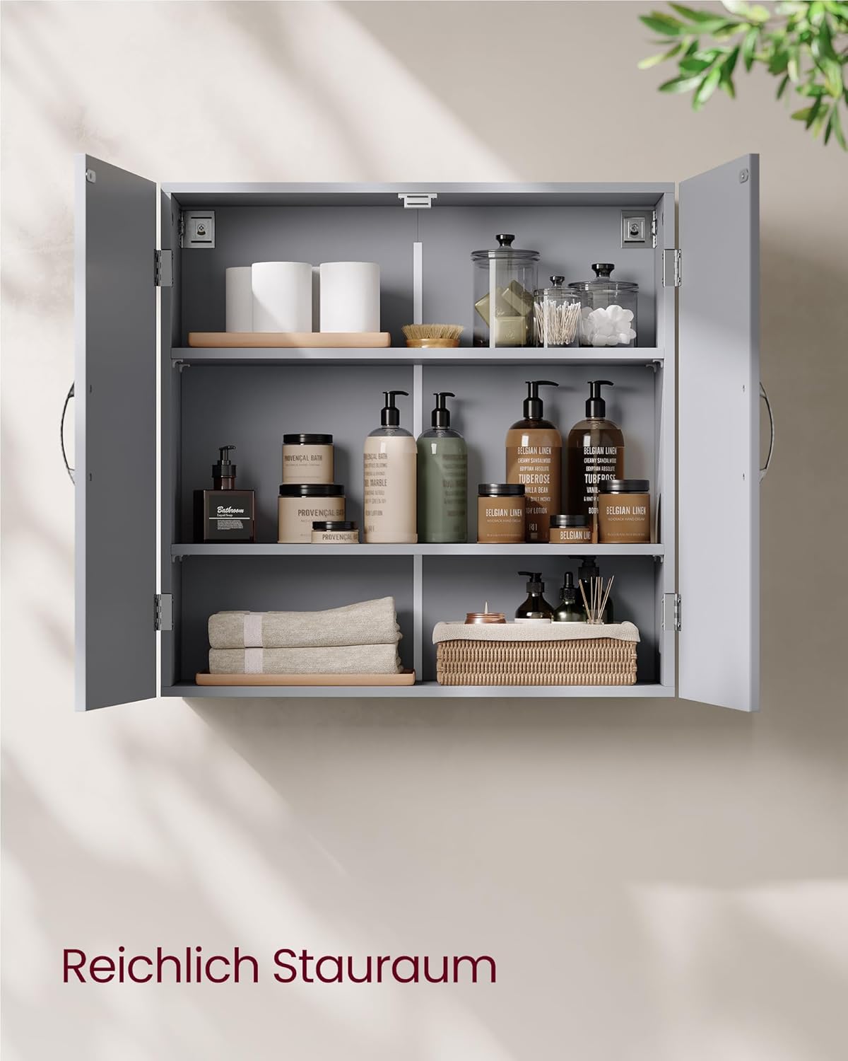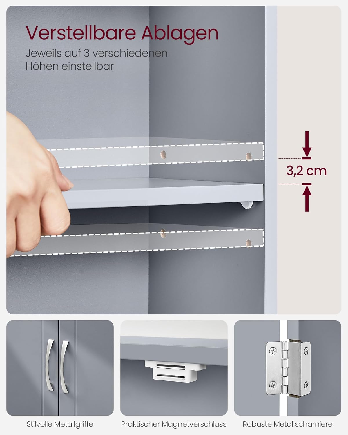 VASAGLE BBC320P36 Стенен шкаф за баня 18 x 60 x 60 см с регулируеми рафтове, цвят гълъбово сиво