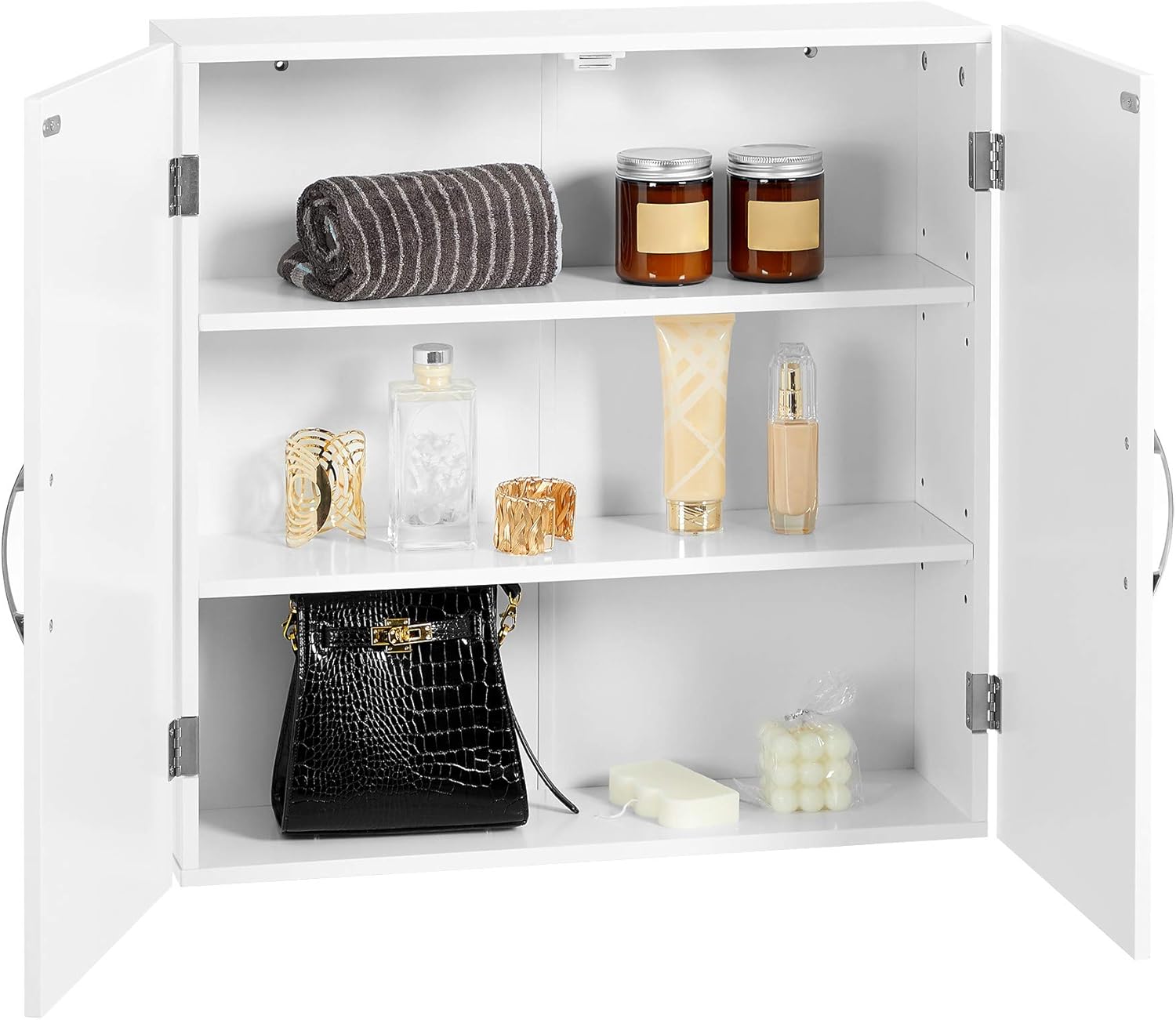 VASAGLE BBC320W01 Стенен шкаф за баня 18 x 60 x 60 см с регулируеми рафтове, облачно бял