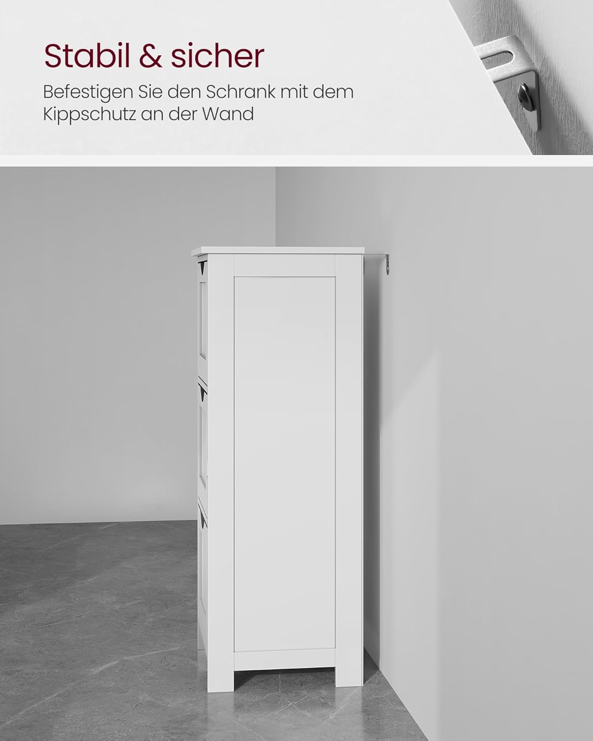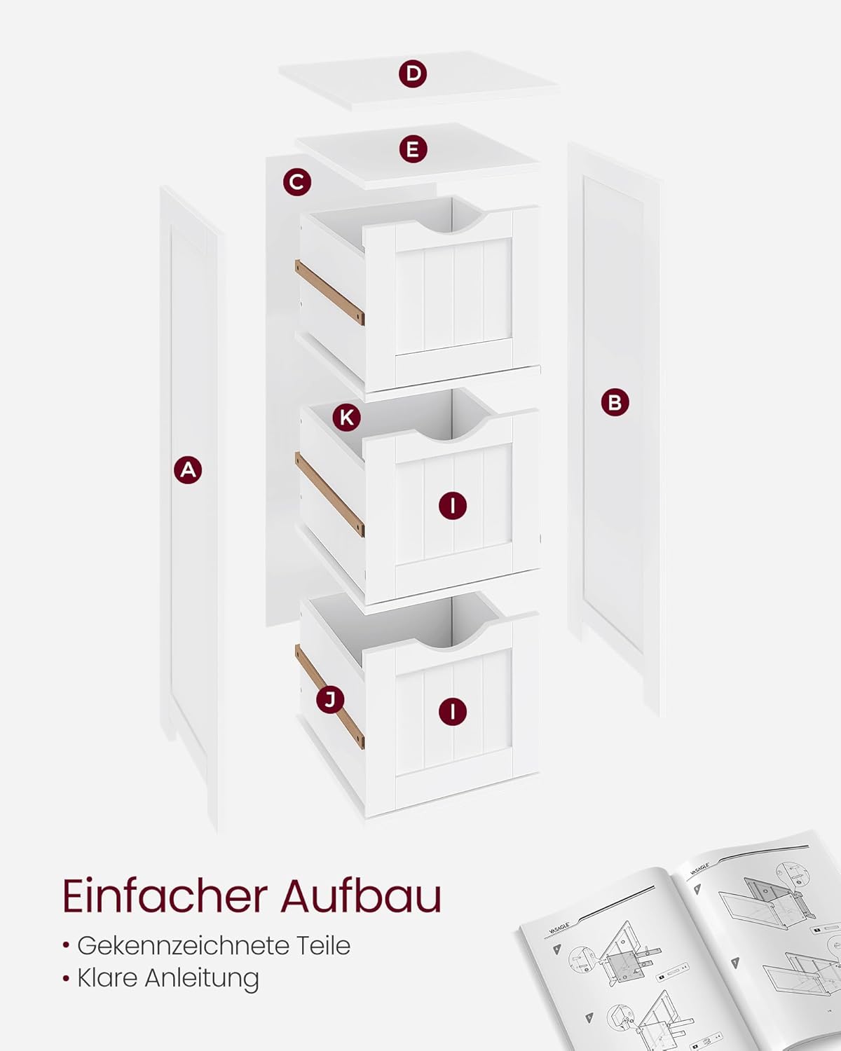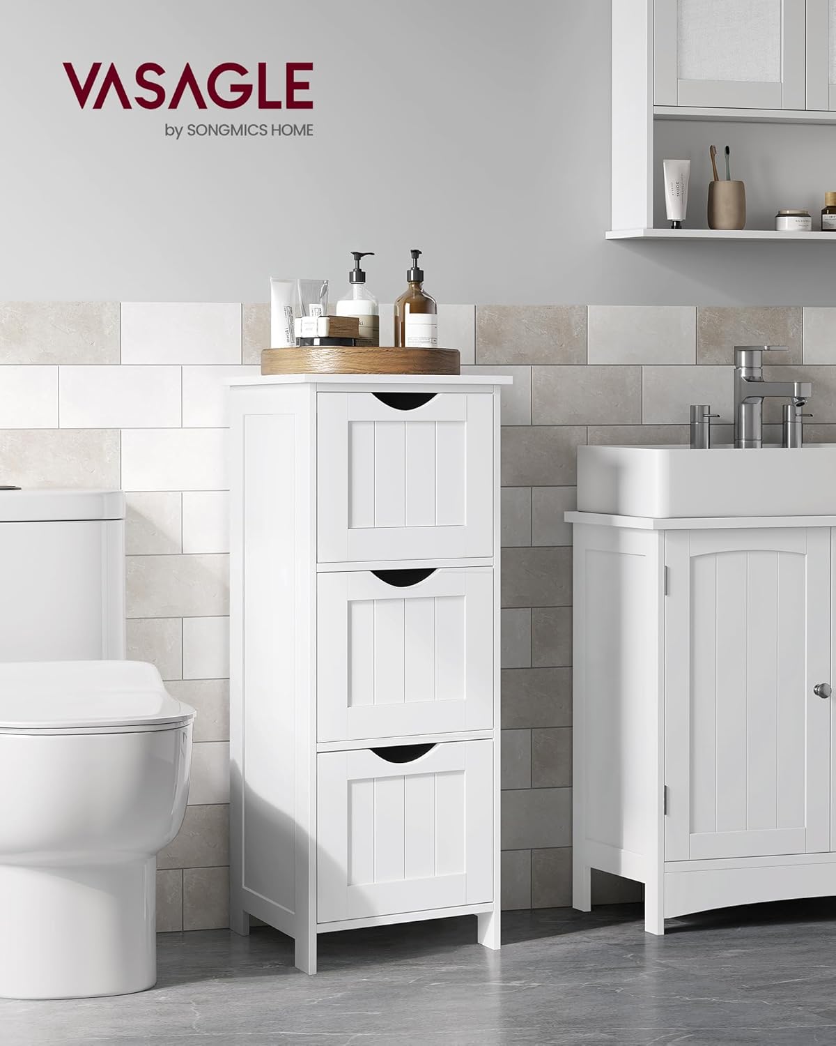 VASAGLE BBC50WT Шкаф за баня с 3 чекмеджета, свободно стоящ, 30 x 32 x 81 см, хол, трапезария, кухня, модерен стил, матово бяло