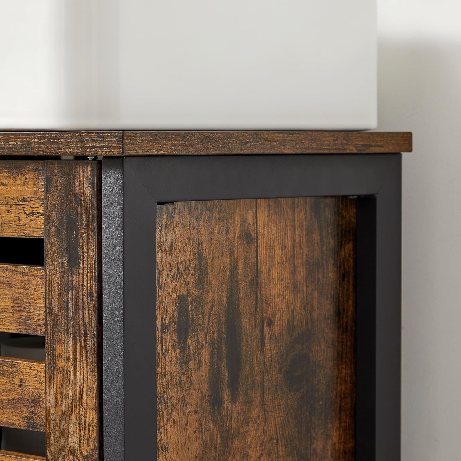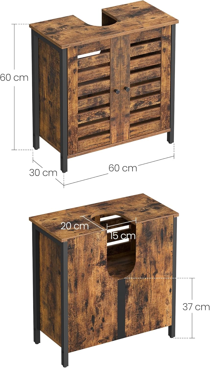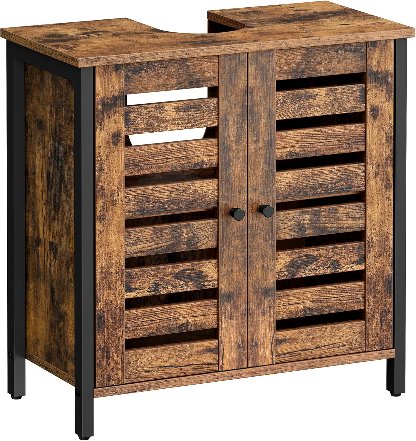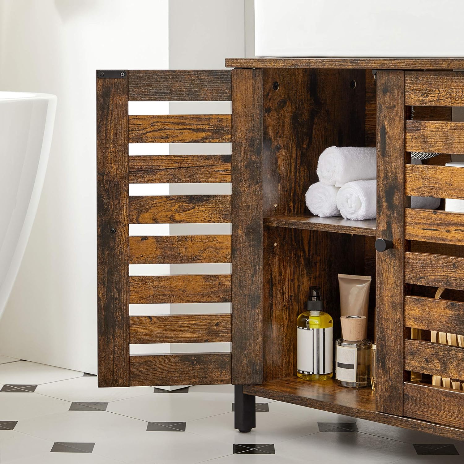 VASAGLE BBC902B01 Шкаф за баня 30 x 60 x 60 см с 2 врати с ламели, регулируем рафт с дръжки, винтидж кафяво/черно