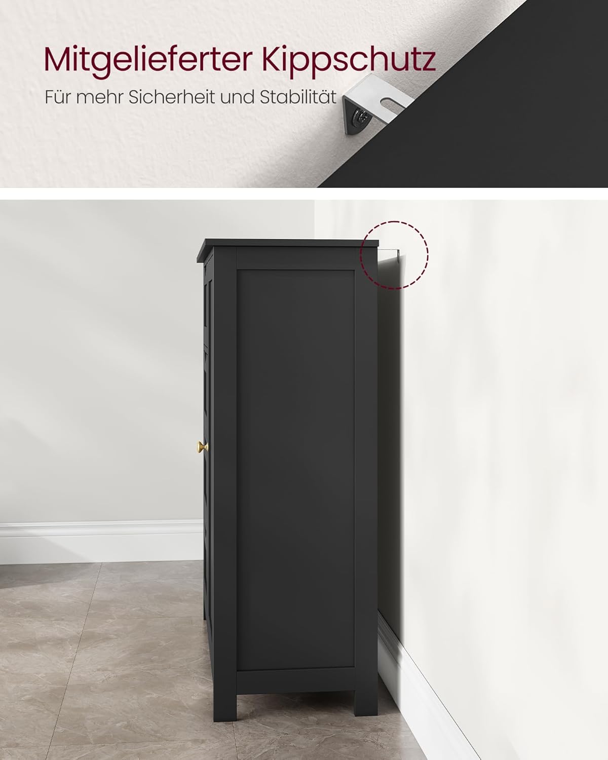 • Стабилен и безопасен: Благодарение на здравите MDF панели, този шкаф за баня е здрав и стабилен; включената защита от накланяне осигурява допълнителна стабилност и безопасност.