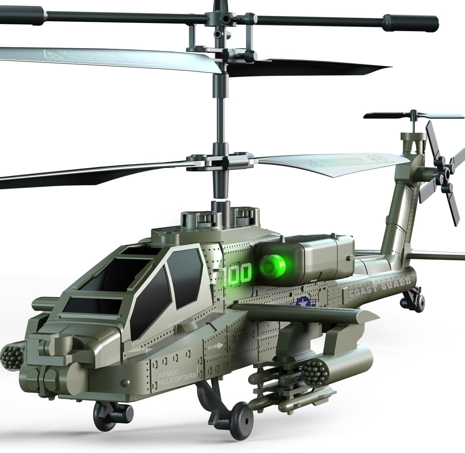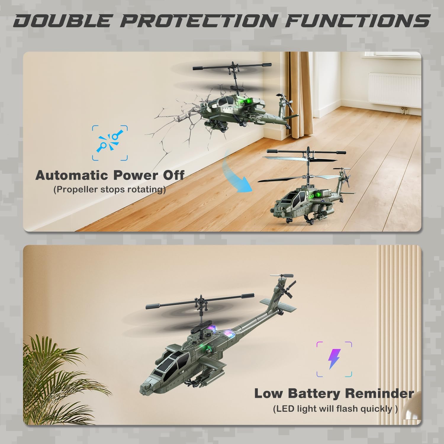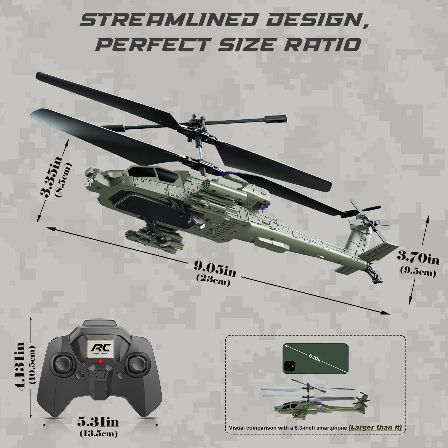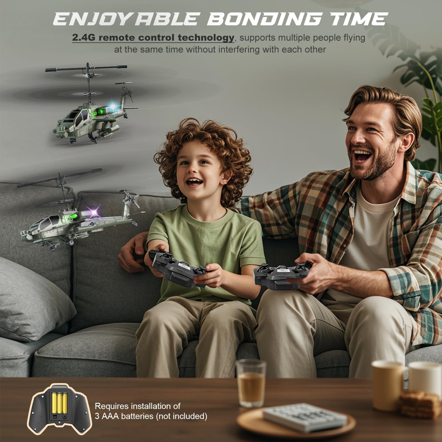 VATOS Дистанционно управляван хеликоптер, 2.4G RC хеликоптер с 2 батерии и LED светлина с функция за стартиране с един бутон и задържане на височина, военна серия RC хеликоптер играчка за вътрешна употреба за деца или начинаещи