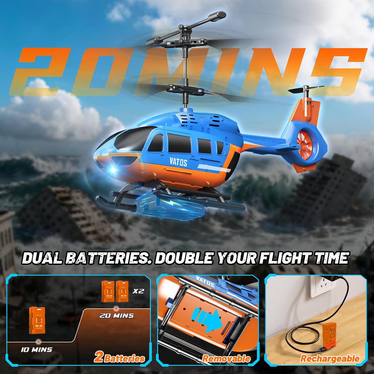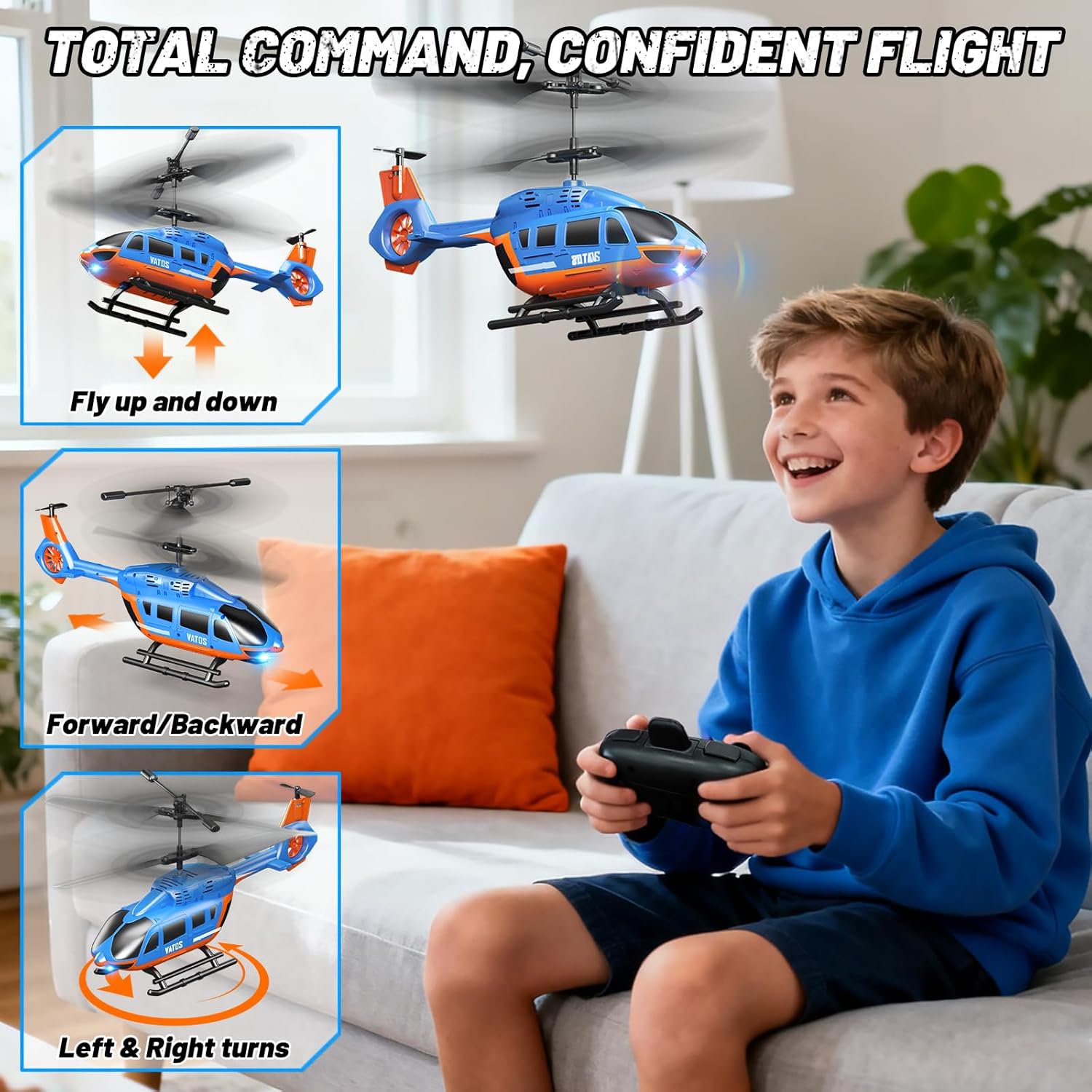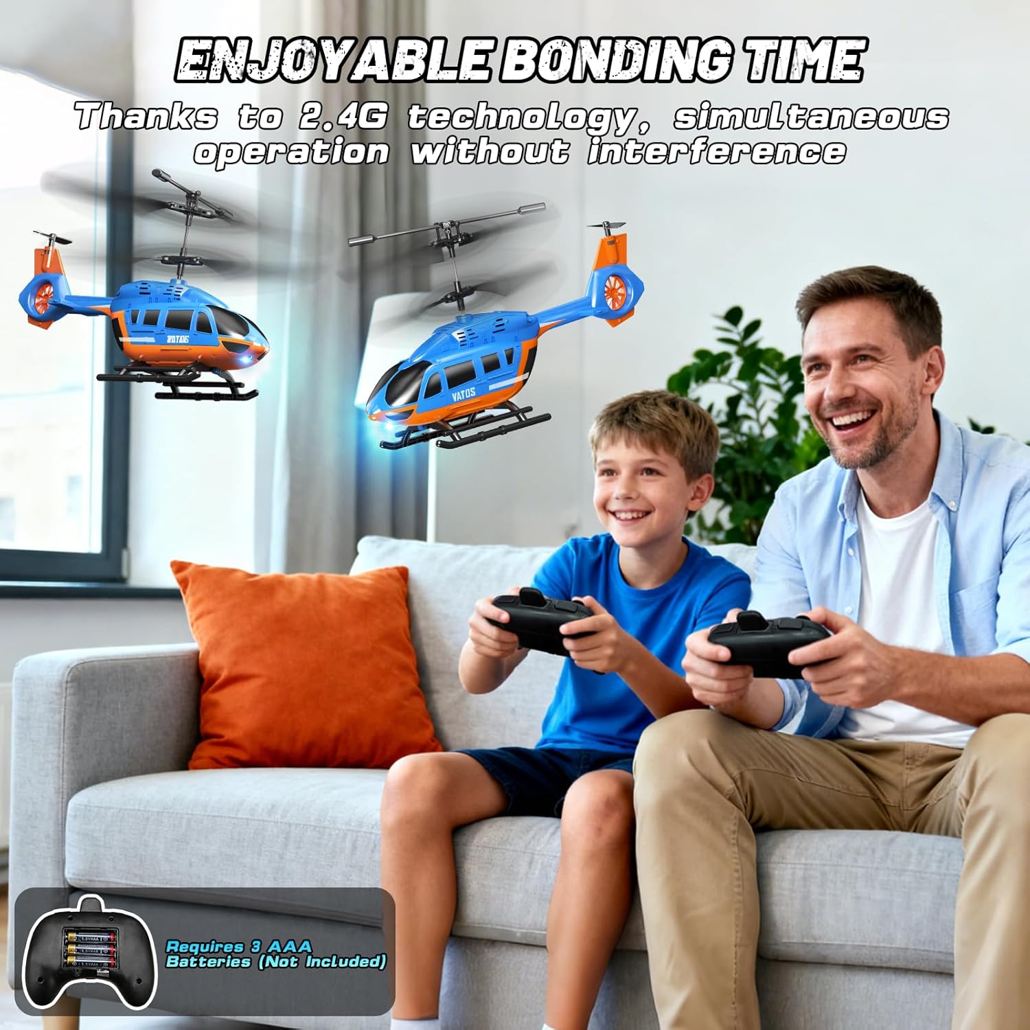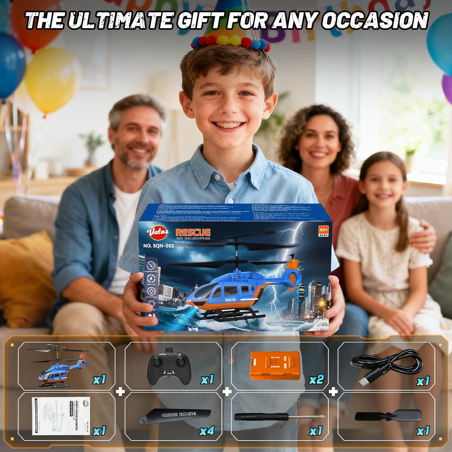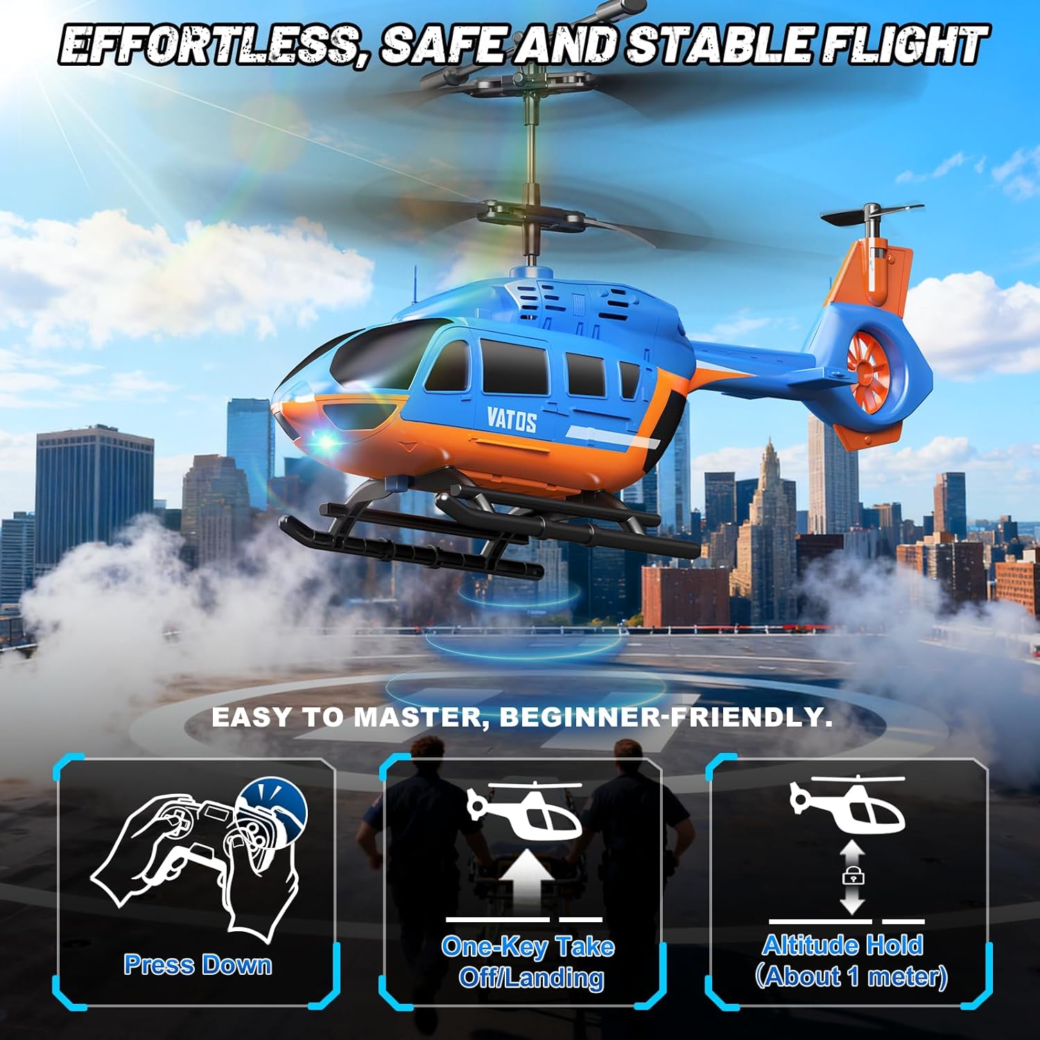 VATOS RC хеликоптер за деца, 2.4G дистанционно управляем хеликоптер с LED светлина, задържане на височина, стартиране с един бутон, 3.5 канален спасителен самолет за вътрешна играчка за деца/начинаещи над 10 години