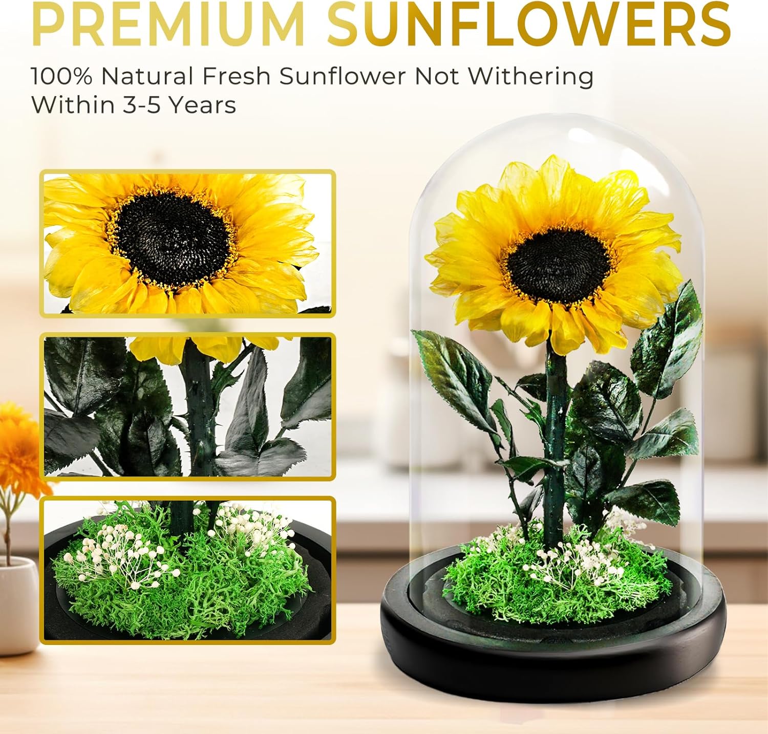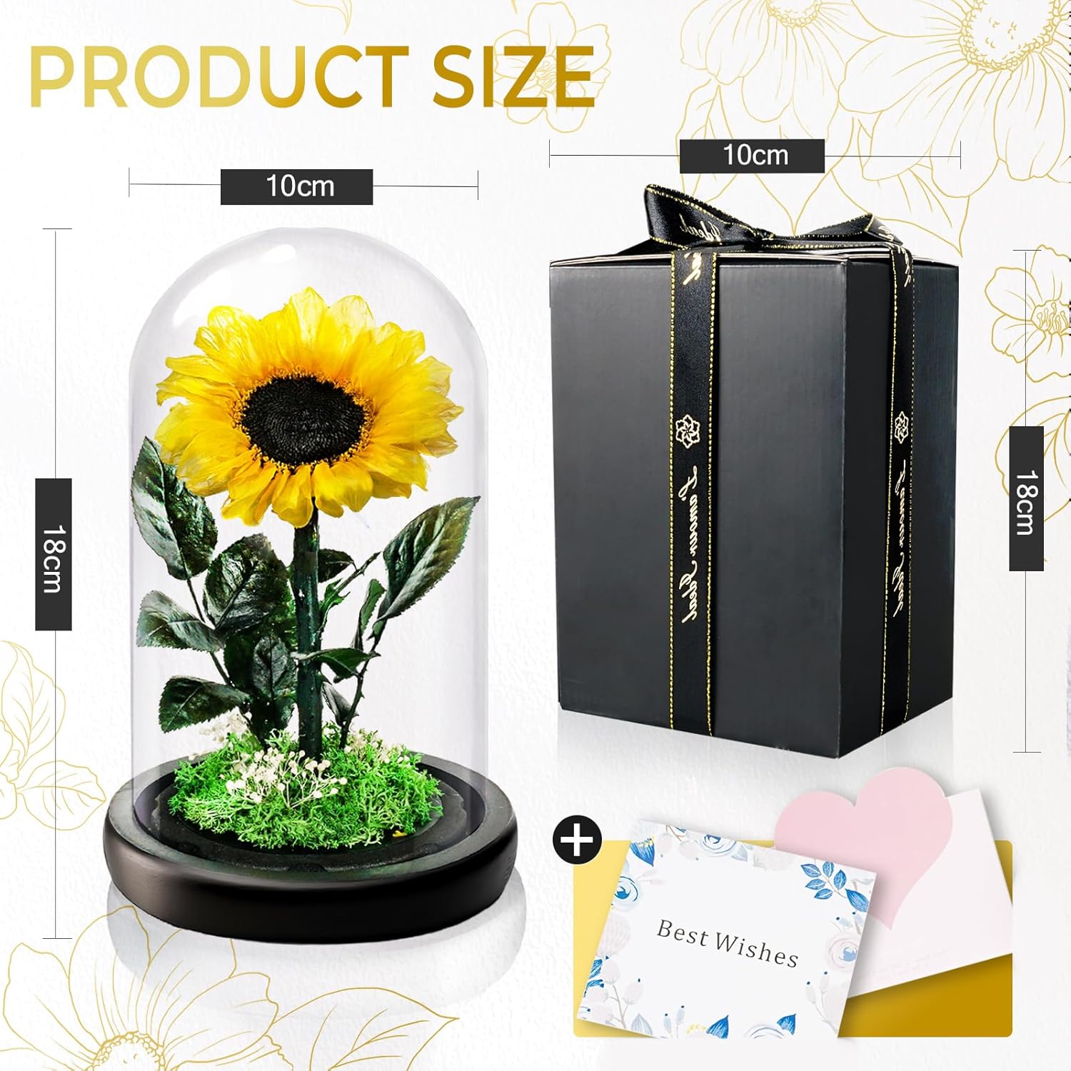 Препоръчваме внимателно боравене с продукта и избягване на отваряне на стъкления купол, за да се избегне случайно повреждане на цветята.