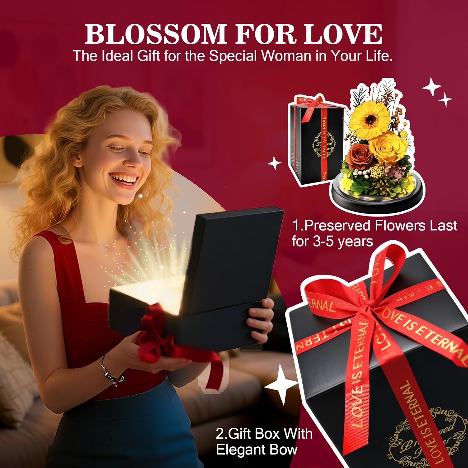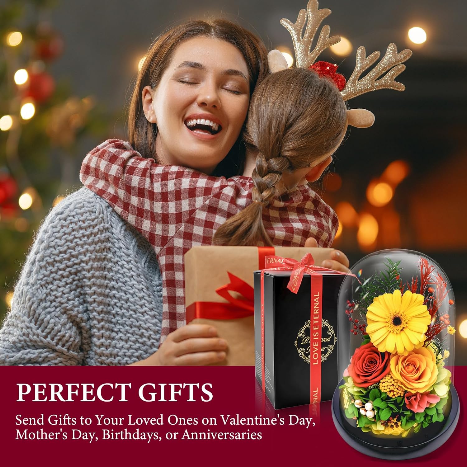 Подаръци от рози за жени, Вечни безкрайни рози в стъкло, Цветя за рожден ден за мама и приятелка, Подарък от Тулуб за съпруга и приятелка за рожден ден, Идеи за подарък за годишнина за нея, Роза