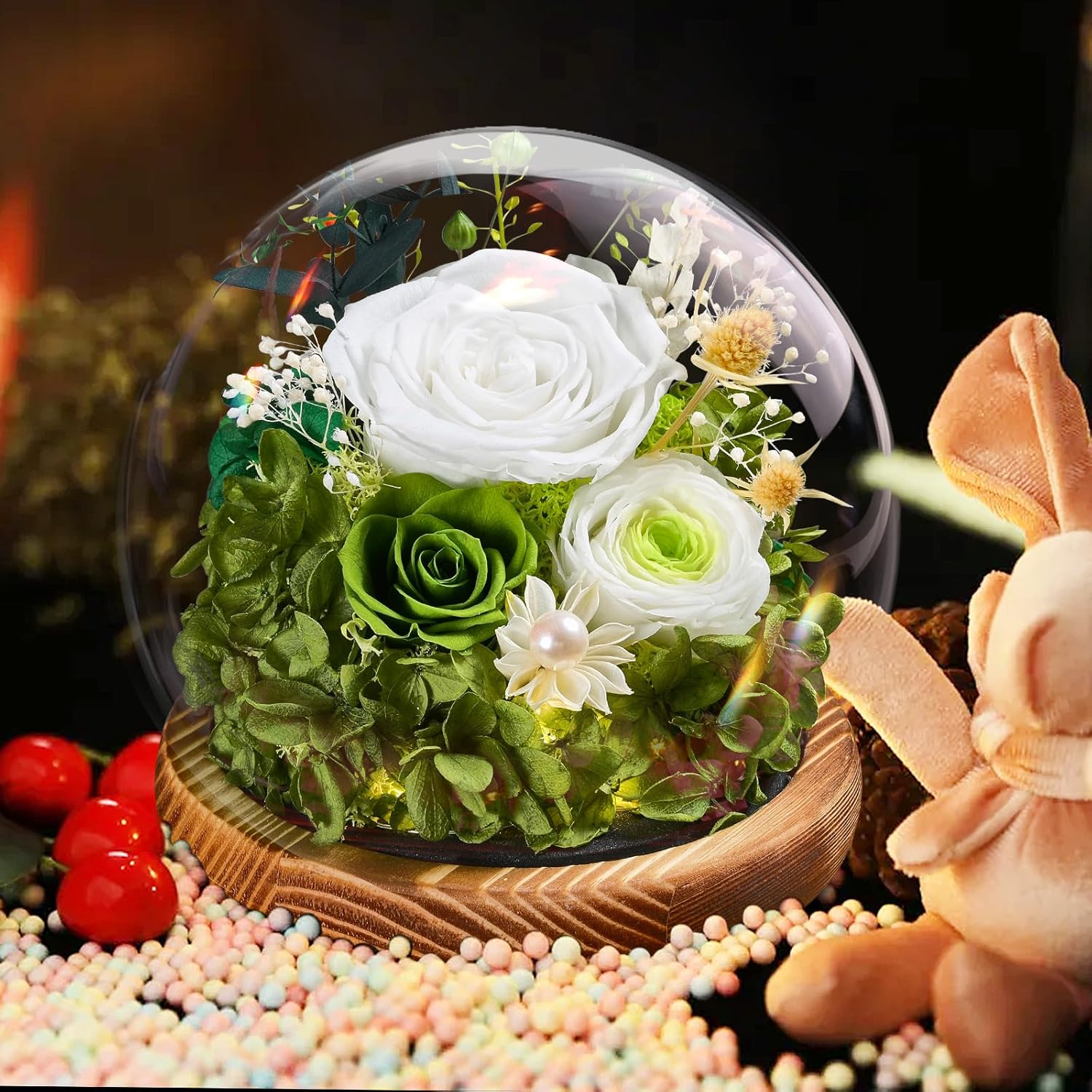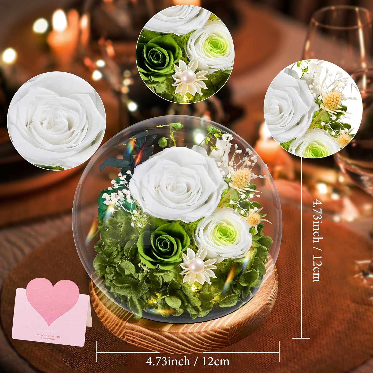 Препоръчваме внимателно боравене с продукта и избягване на отваряне на стъкления купол, за да се избегне случайно повреждане на цветята.