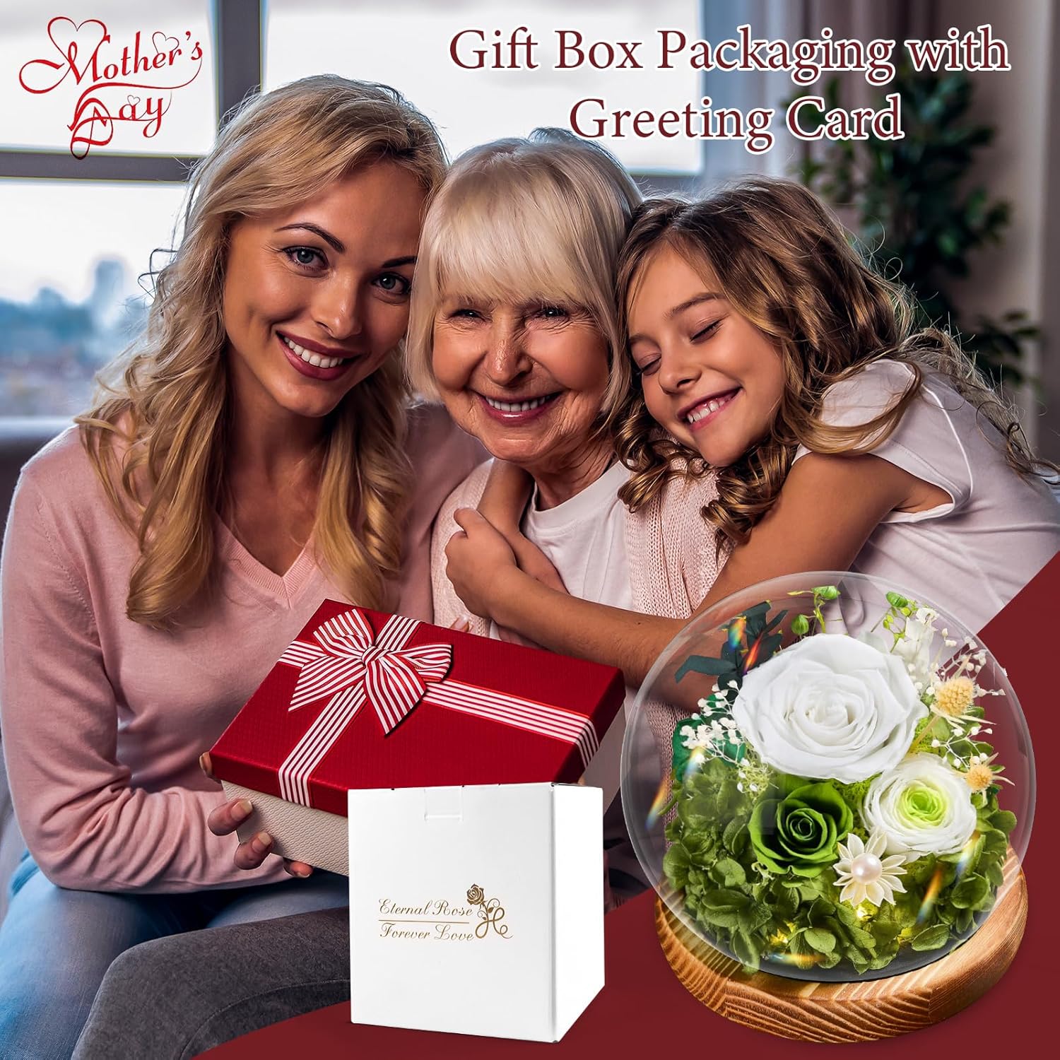 Подаръци от рози за жени, Вечни безкрайни рози в стъкло, Цветя за рожден ден за мама и приятелка, Подарък от Тулуб за съпруга и приятелка за рожден ден, Идеи за подарък за годишнина за нея, Роза