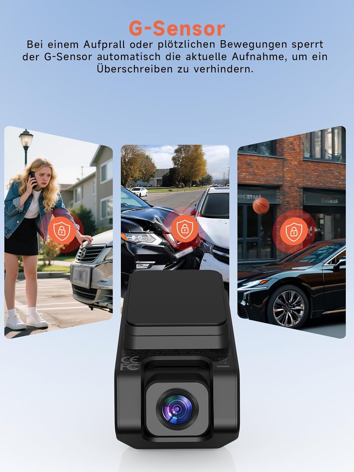 • [G-сензор за откриване на сблъсък и 24-часово наблюдение на паркирането] – GT803 разполага с регулируем G-сензор, който открива внезапни сблъсъци или удари и заключва записите, за да предотврати презаписване. 24-часовият режим на паркиране позволява автоматичен запис в случай на движение или удари върху паркираното превозно средство. Режимът на заснемане с ускорен кадър спестява място за съхранение, като записва с 1 кадър в секунда. (Хардуерният комплект не е включен)