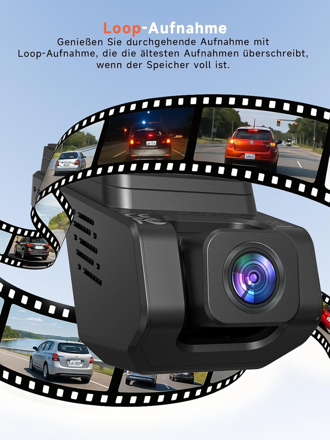 • [Цикличен запис и безпроблемно съхранение] – Тази видеорегистратор поддържа цикличен запис и автоматично презаписва най-старите, отключени записи, когато картата с памет е пълна (до 256GB, не е включена). Записът започва автоматично с двигателя и разделя кадрите на управляеми клипове за лесен достъп. Това гарантира, че никога няма да пропуснете критичен момент на пътя.