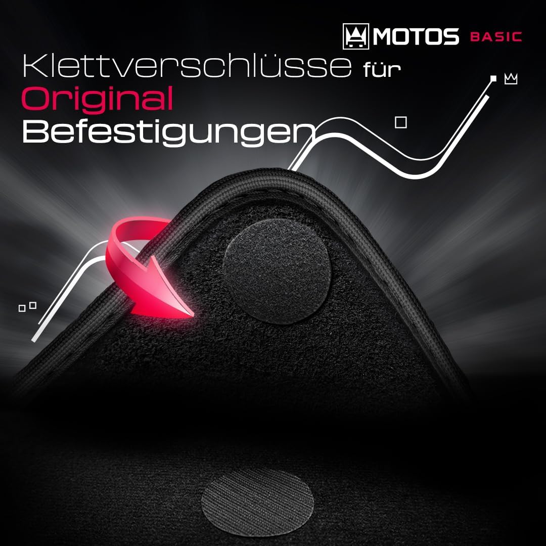 Велурени стелки MOTOS Basic, подходящи за BMW Серия 1 E87 2004-2011 - Basic, Материал, Червени стелки за кола - Изпитайте нов комфорт при шофиране с комплект стелки за колата си