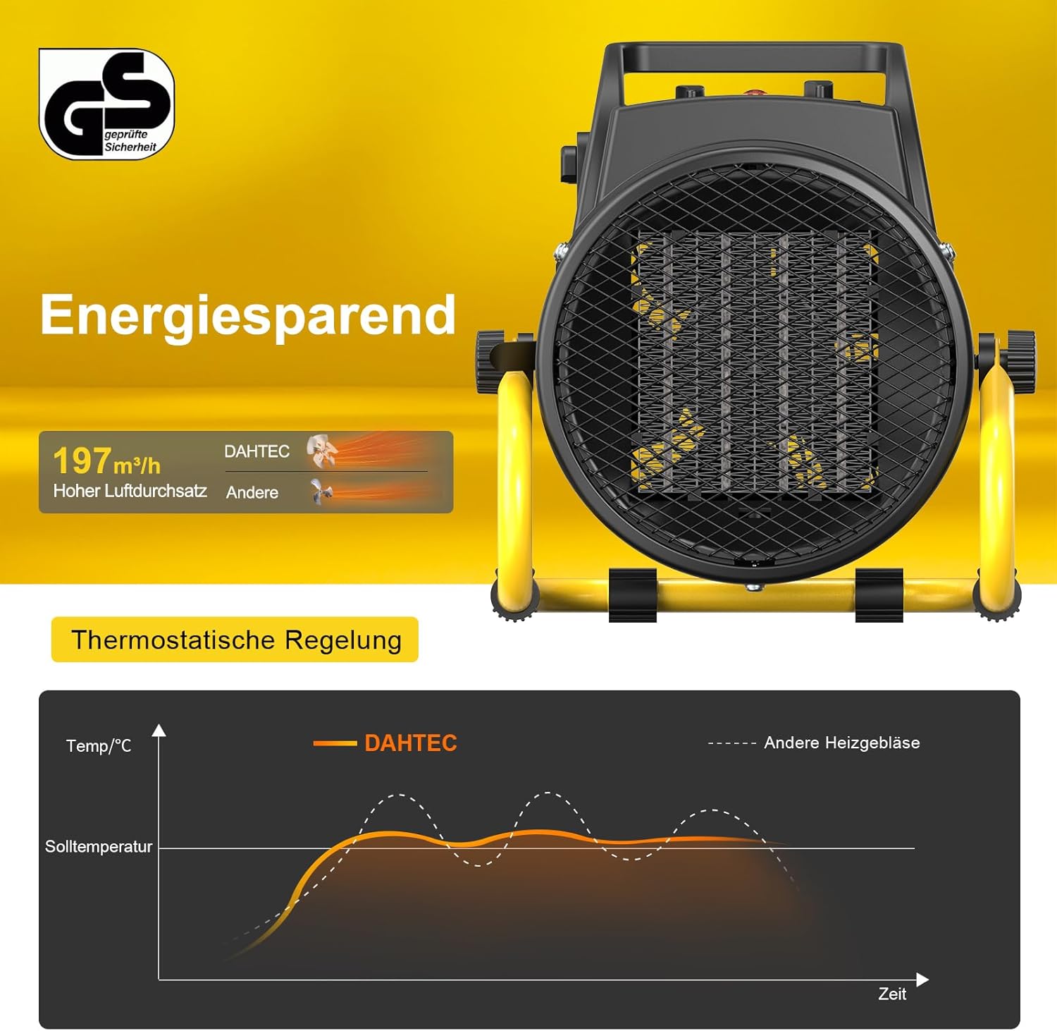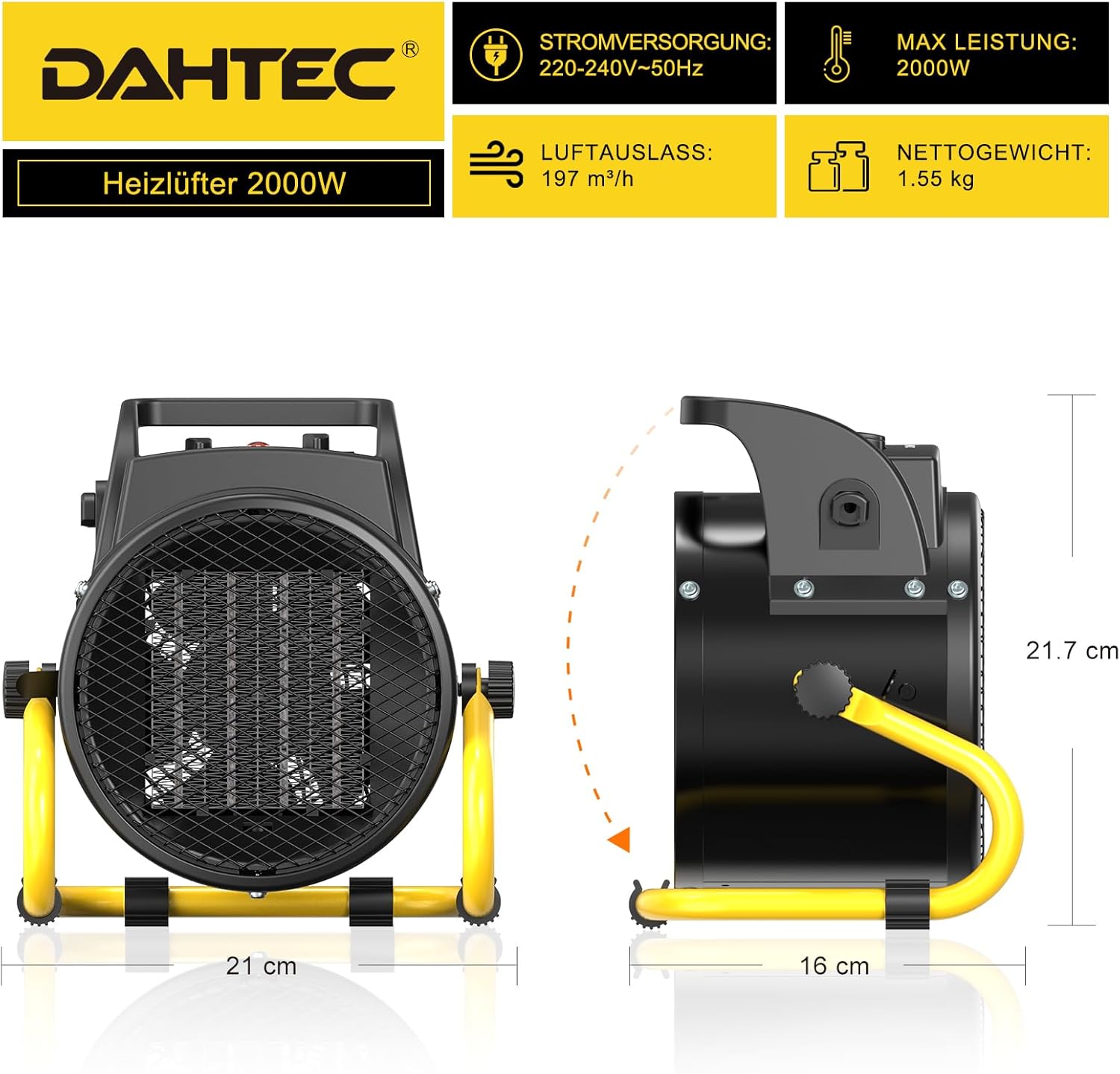 • Многостранно приложение: електрическият вентилаторен отоплител DAHTEC е идеалният избор за мобилни отоплителни нужди и е перфектен за малки помещения като апартаменти, офиси, работилници, складове, гаражи, строителни площадки, оранжерии и други.