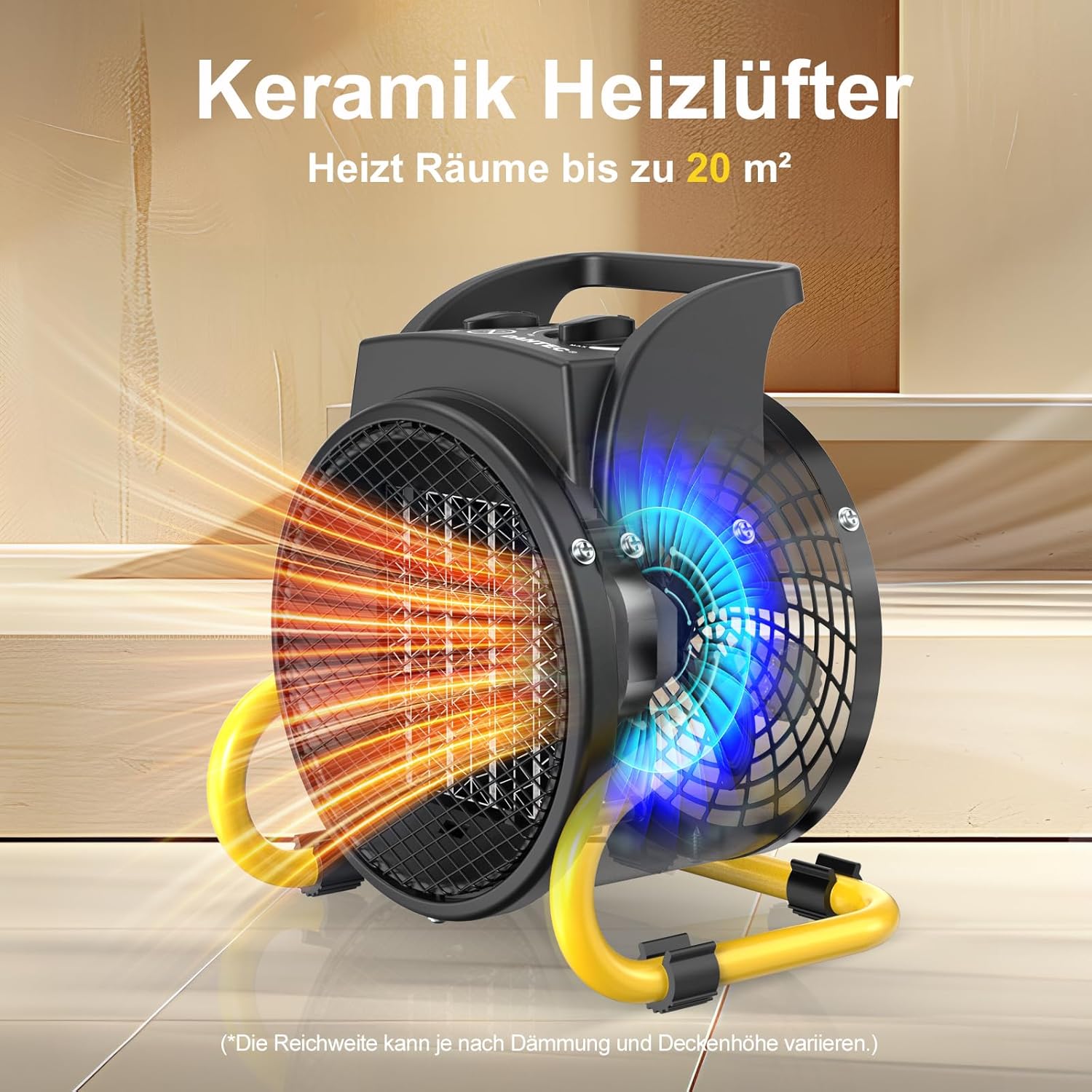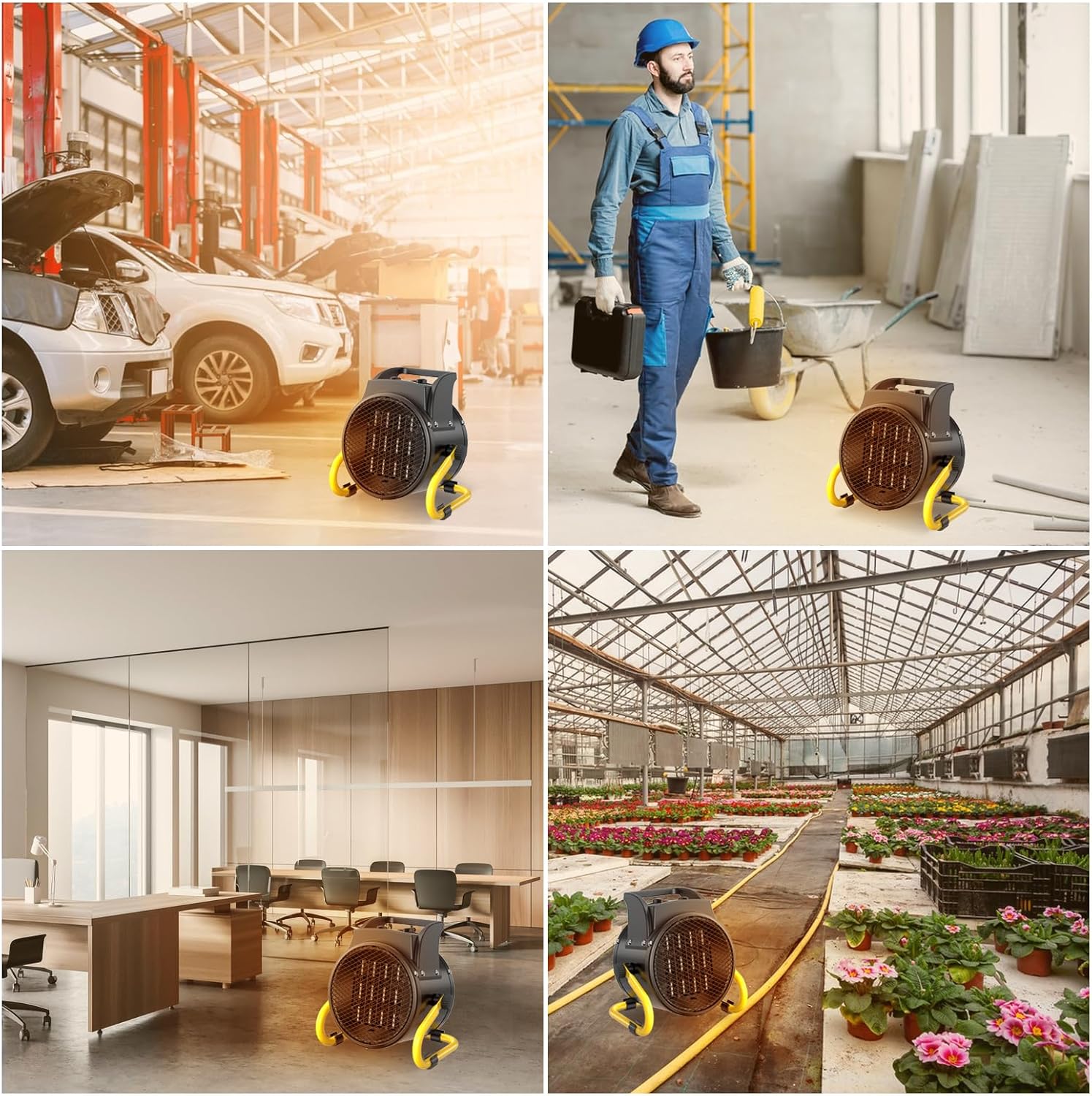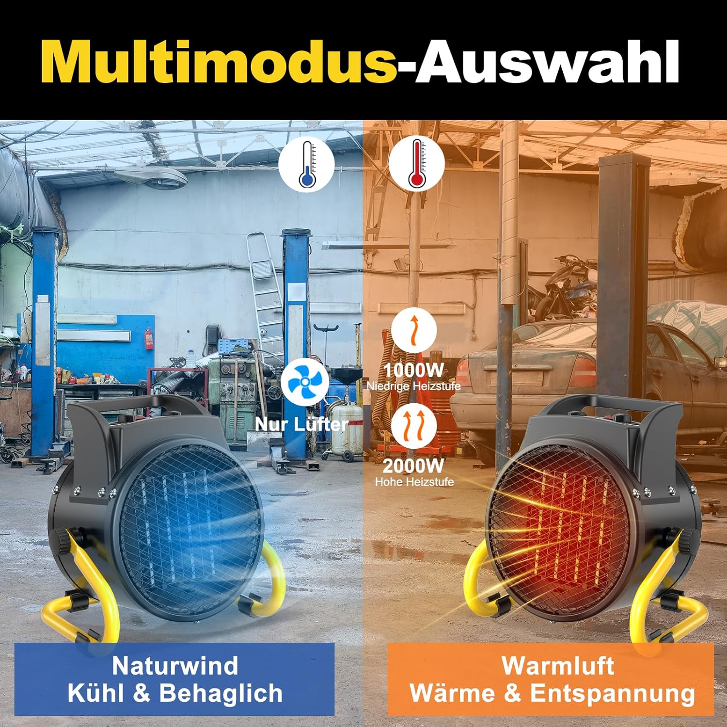 Вентилаторен нагревател 2000 вата, керамичен нагревател, електрически нагревател за строителство, строителен нагревател с термостат, нагревател с 3 степени на топлина за строителни обекти, домашна употреба, работилница, гараж