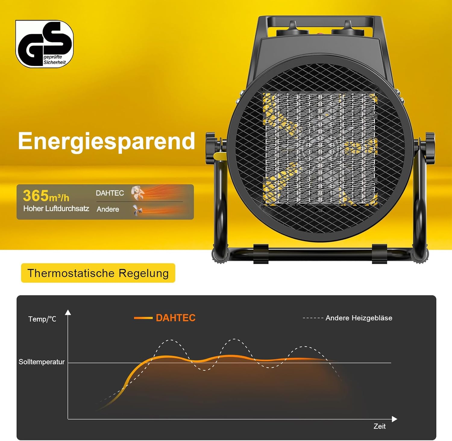 • Многостранно приложение: електрическият вентилаторен отоплител DAHTEC е идеалният избор за мобилни отоплителни нужди и е перфектен за малки помещения като апартаменти, офиси, работилници, складове, гаражи, строителни площадки, оранжерии и други.