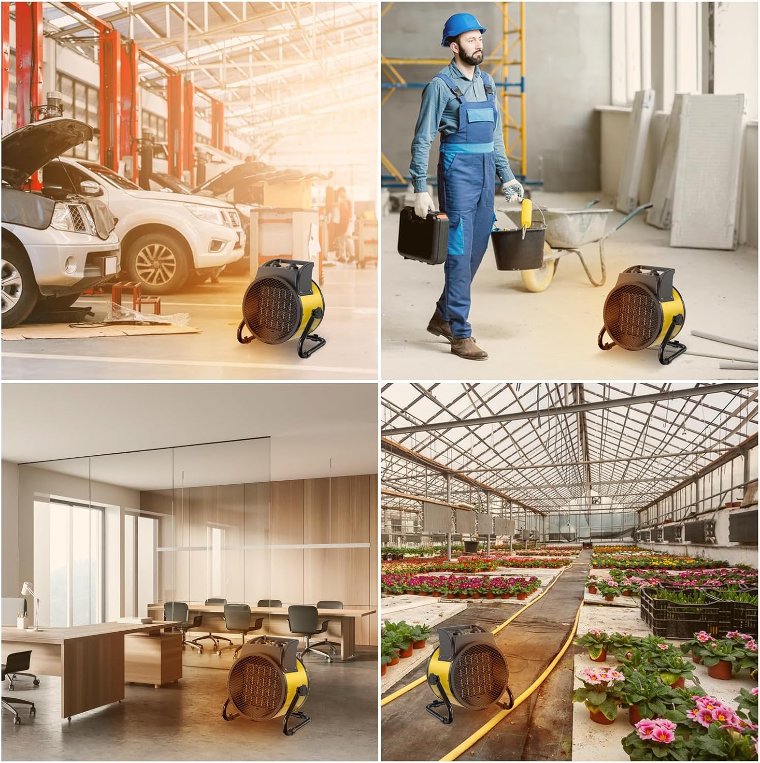 Вентилаторен нагревател 3000 вата Керамичен нагревател Електрически нагревател Строителен нагревател Строителен нагревател с термостат Нагревател с 3 степени на топлина за строителни обекти Домашна употреба Работилница Гараж