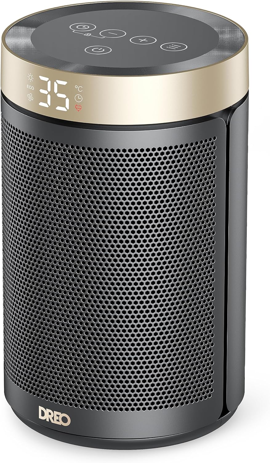 • Вътрешният вентилаторен нагревател Dreo съчетава усъвършенстваната PTC система от 1500 W на Hyperamic с нов дизайн на топлинна фуния, за да достави топлина за секунди и да подобри циркулацията на горещ въздух за до 200% по-дълъг обхват от конвенционалните нагреватели.