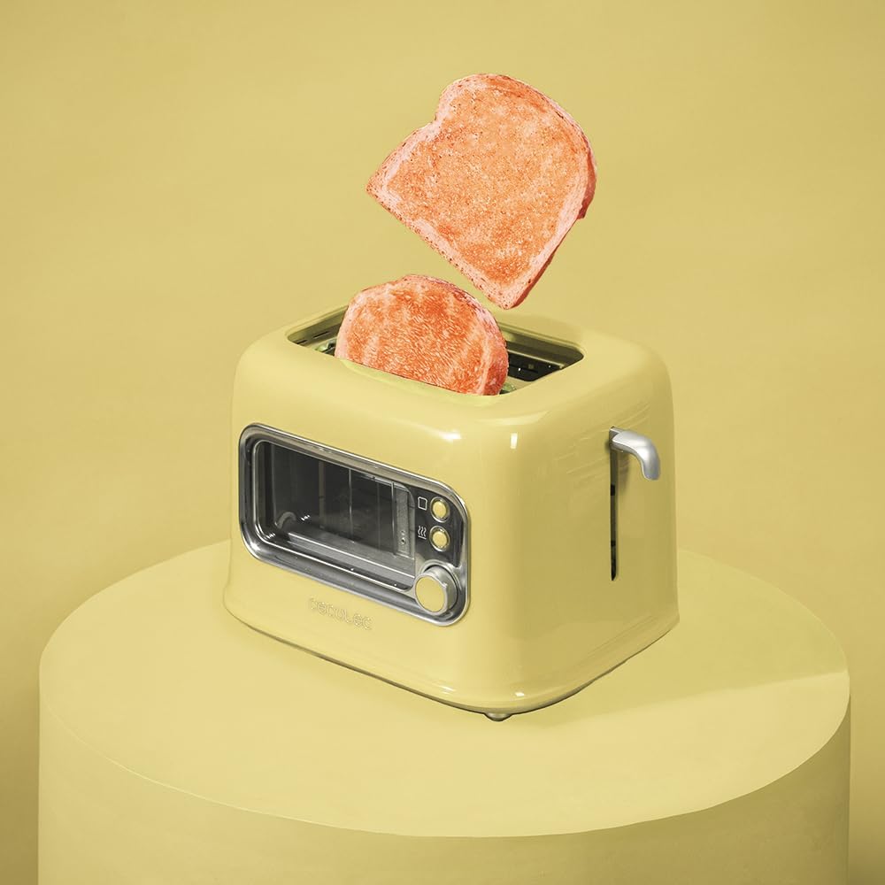 Вертикален тостер Cecotec RetroVision Yellow, мощност 700 W, 2 екстра широки слота, уникален дизайн на дисплея, контрол на запичането, ретро дизайн, капак против прах