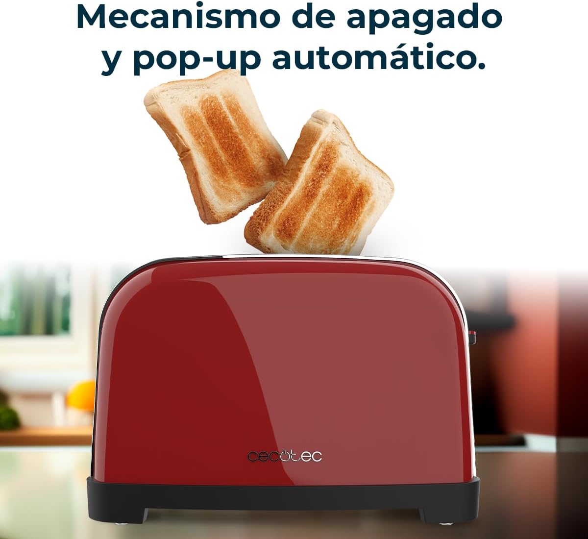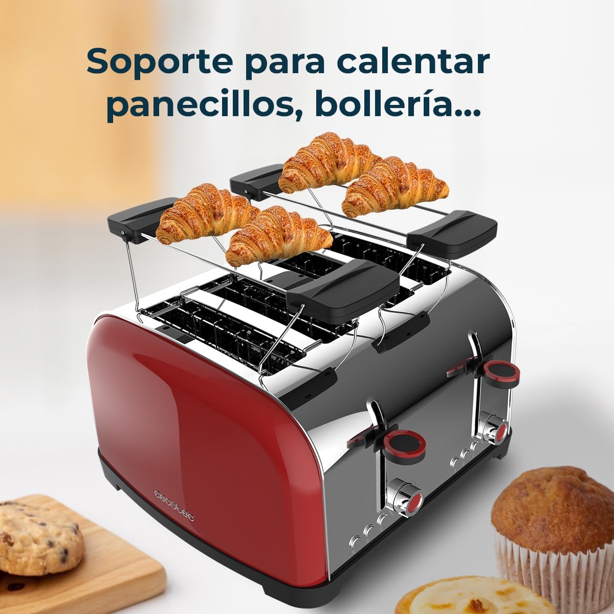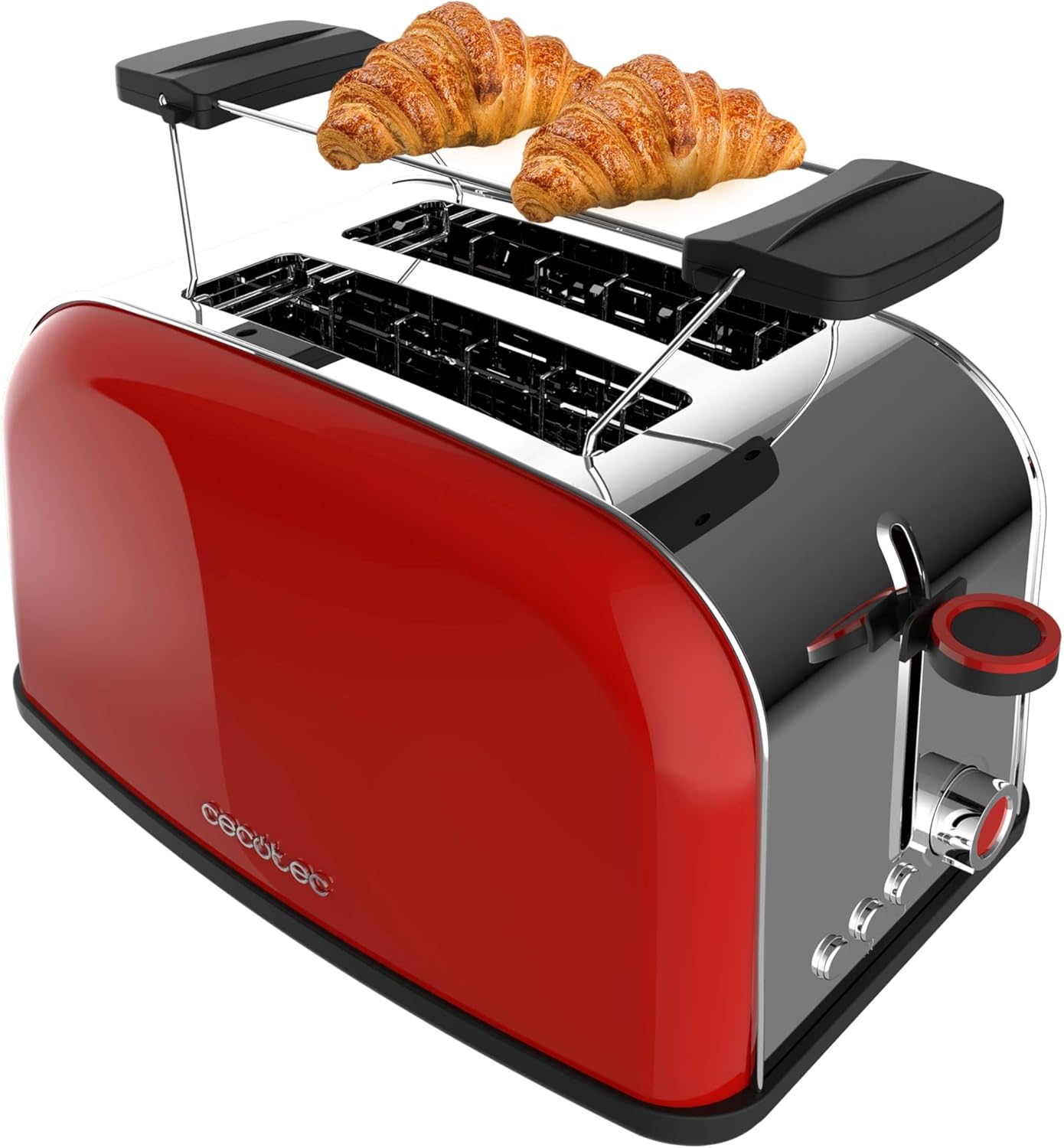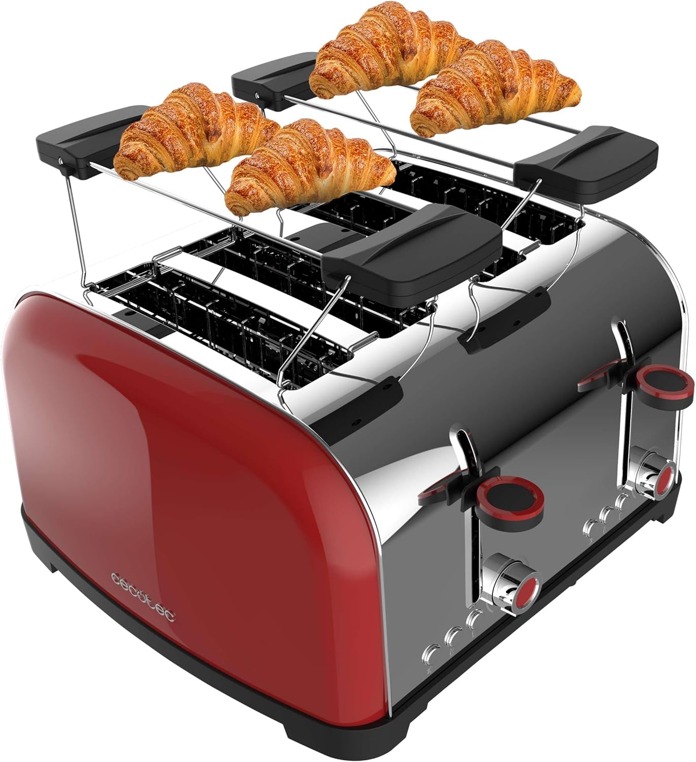 Вертикален тостер Cecotec Toastin' time 1700 Double Red, 1700W, Двоен къс и широк отвор 3.8 см, Горни пръти, Неръждаема стомана, Автоматично изключване и функция за изскачане, Тава за трохи