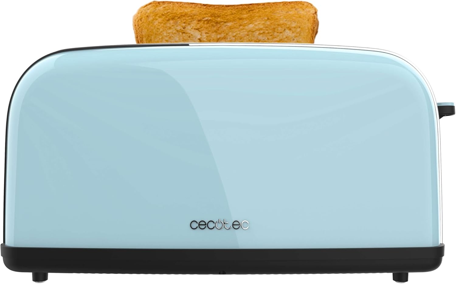 Вертикален тостер Cecotec Toastin' time 850 Blue Long, 1 отвор, 850 W, 2 филийки хляб, широк отвор 3,8 см, поставка за хлебче и тавичка за трохи, неръждаема стомана, син