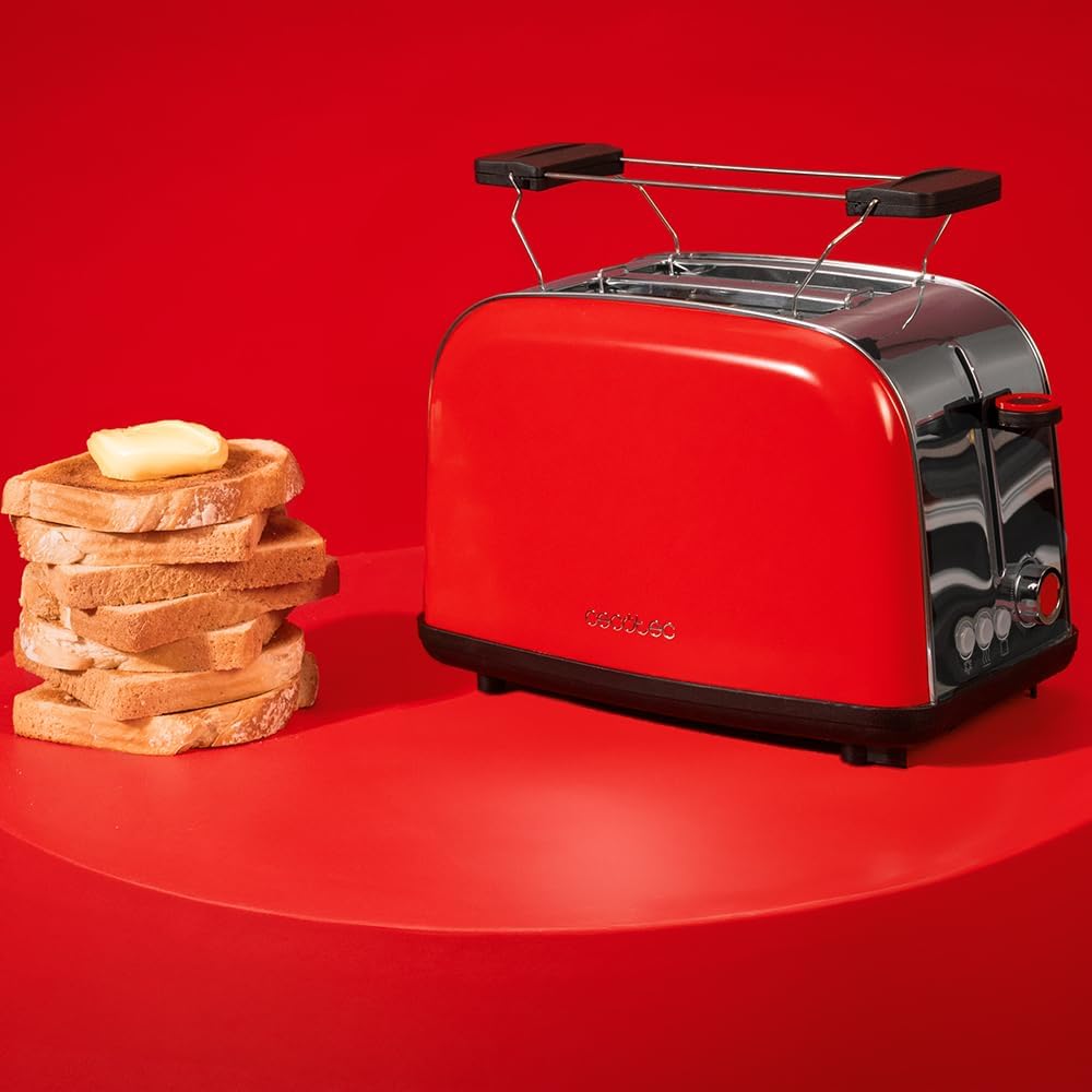 Вертикален тостер Cecotec Toastin' time 850 Червен, 850W, Двоен къс отвор и широк отвор от 3.8 см, Горни пръти, Неръждаема стомана, Автоматично изключване и функция за изскачане, Тава за трохи
