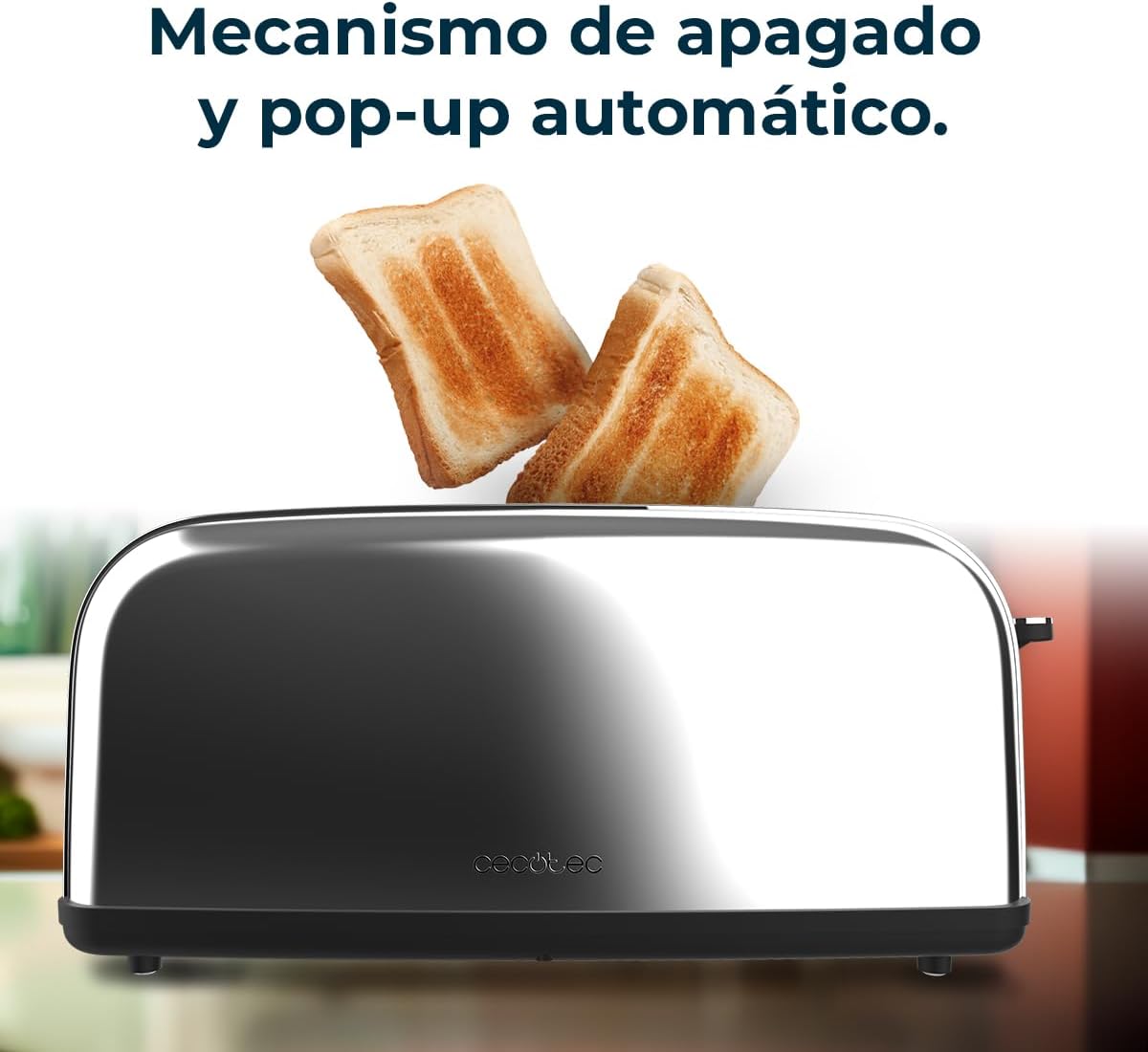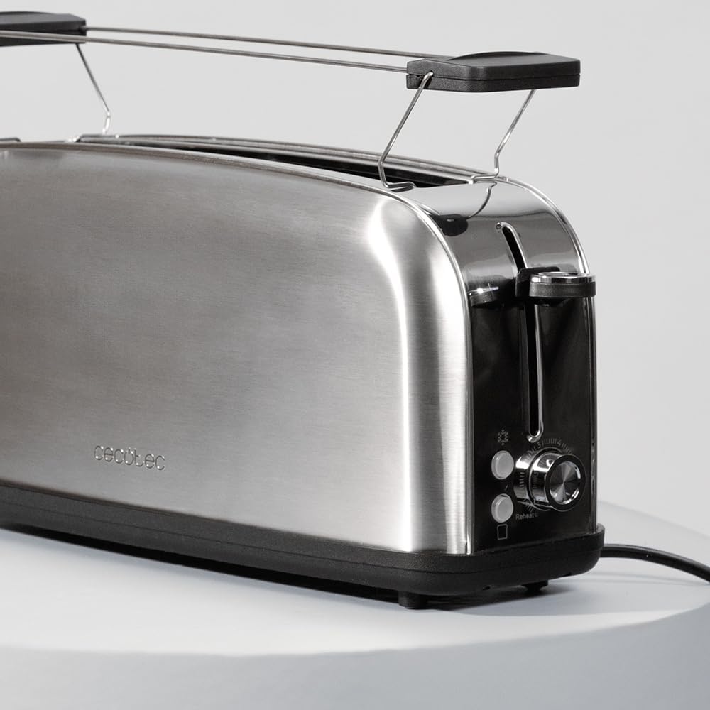 Вертикален тостер Cecotec Toasting' time 850 Inox Long, 850W, Двоен дълъг и широк отвор от 3.8 см, Горни пръти, Неръждаема стомана, Автоматично изключване и функция за изскачане, Тава за трохи