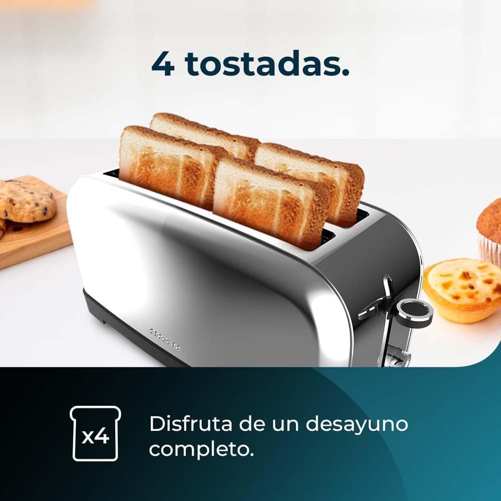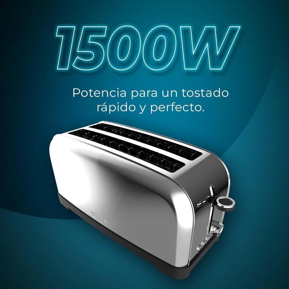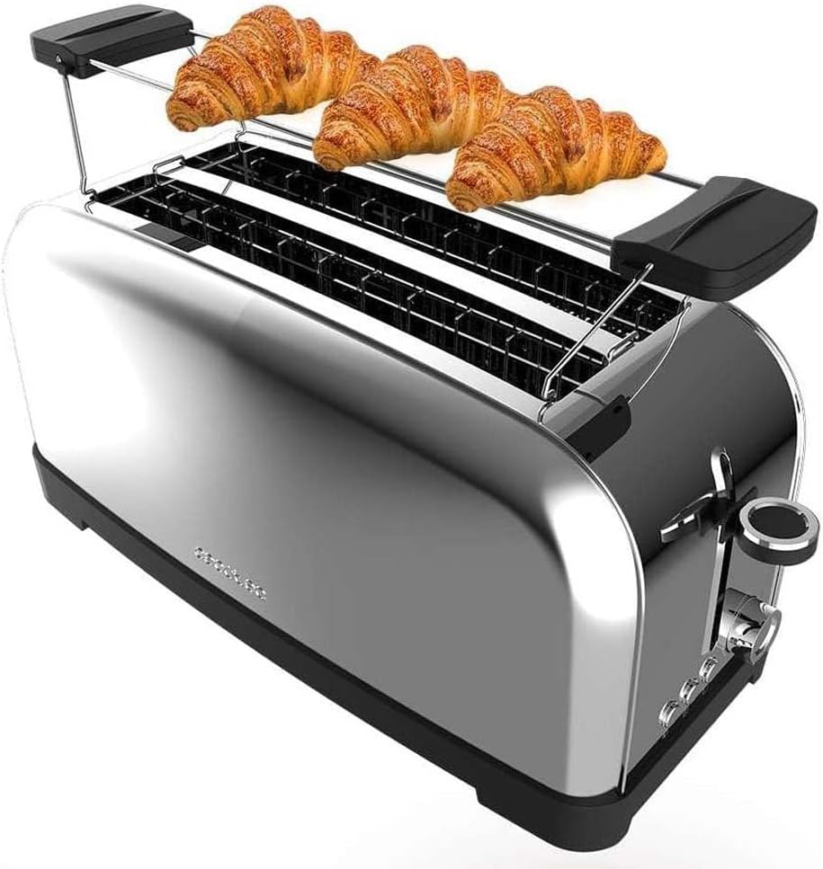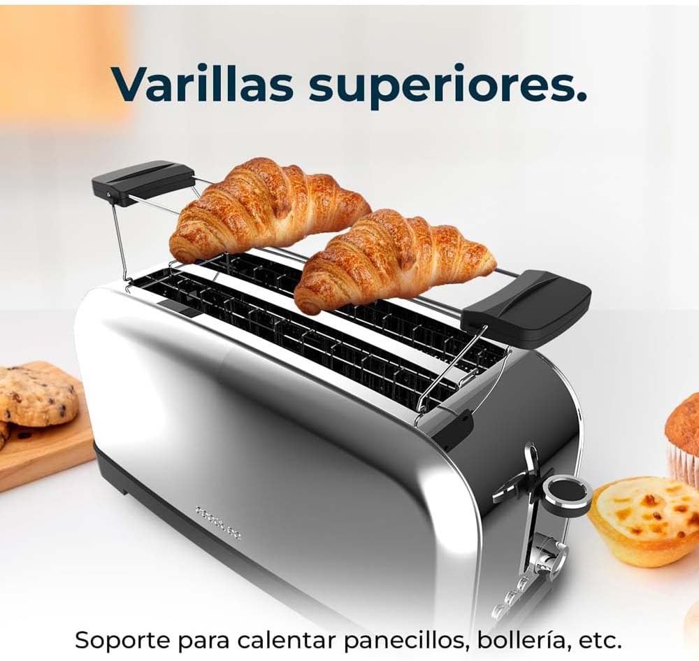 Вертикален тостер Cecotec, време за препичане 1500, неръждаема стомана, 1500 W, двоен дълъг и широк отвор 3,8 см, горни пръти, неръждаема стомана, автоматично изключване и функция за изскачане, тава за трохи