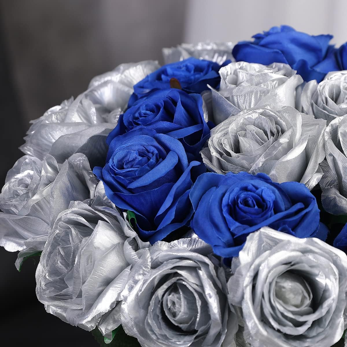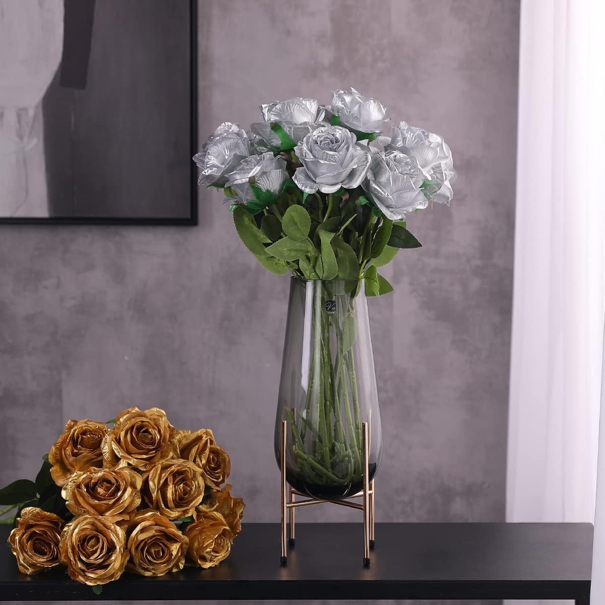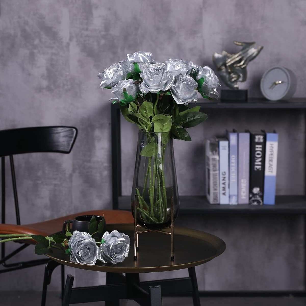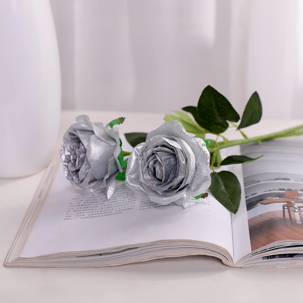 Veryhome 10 броя изкуствени рози, копринени цветя, фалшиви цветя, булчински сватбен букет за дома, градината, рожден ден, парти, дома, сватбена декорация (сребърни)