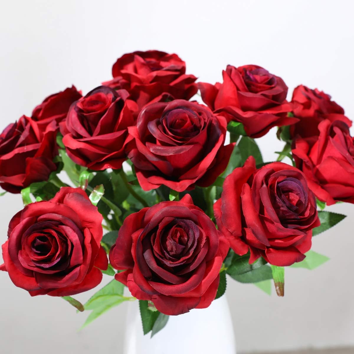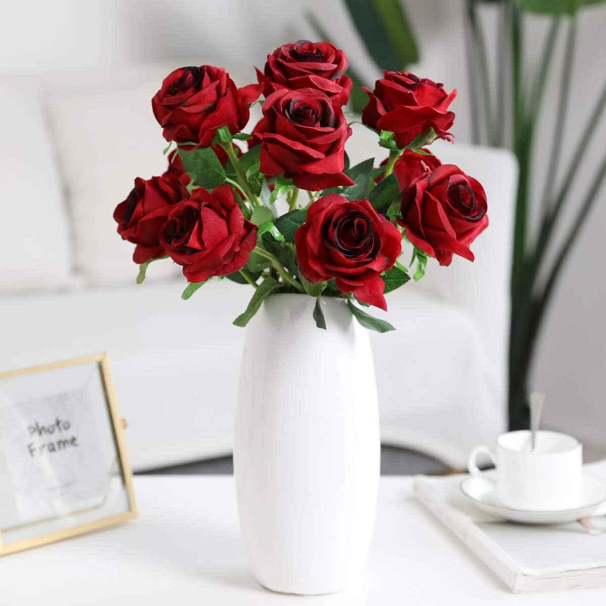 Veryhome 10 броя изкуствени рози, копринени цветя, фалшиви цветя, сватбен букет, за дома, градината, рожден ден, декорация за дома/сватбата