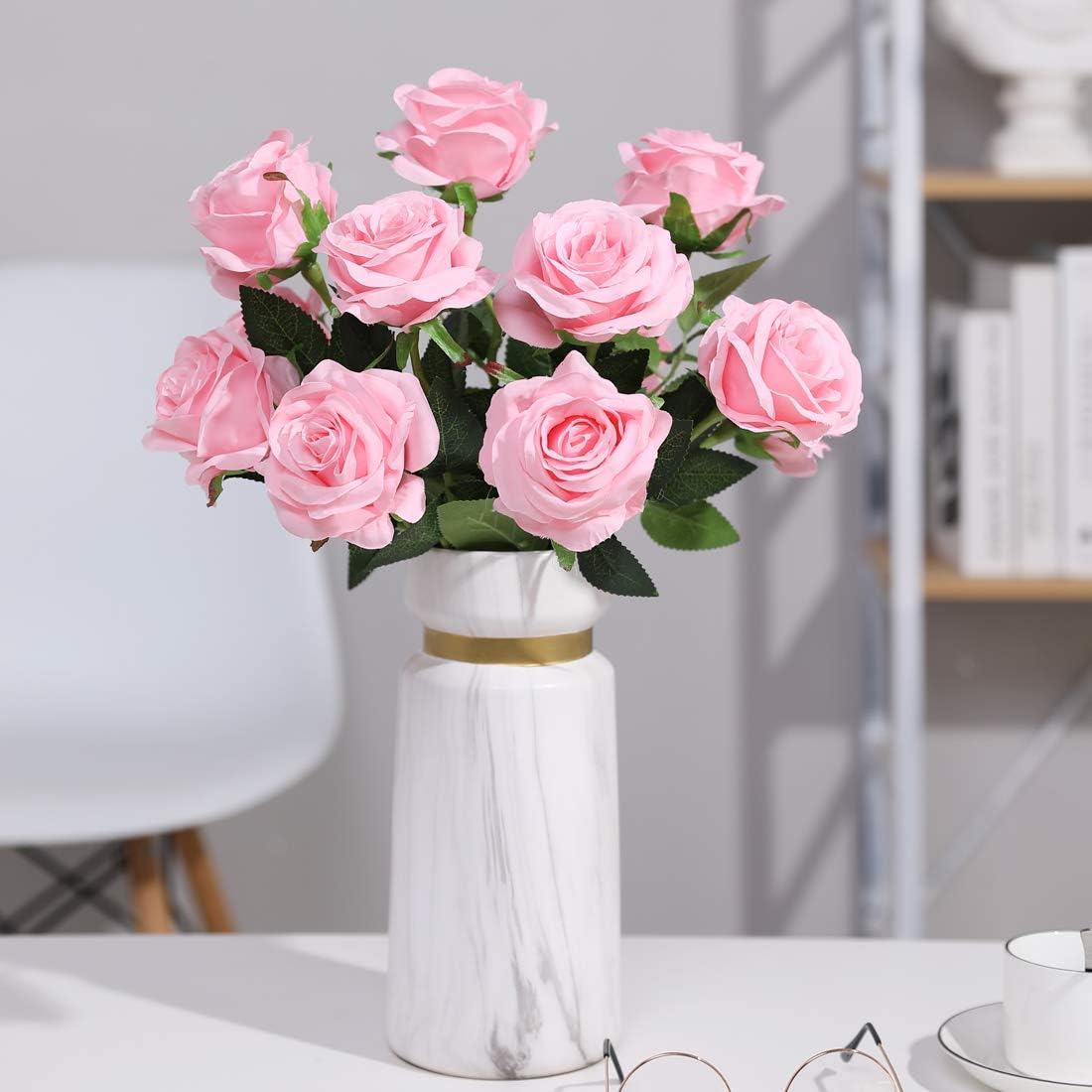 Veryhome 10 броя изкуствени рози, копринени цветя, фалшиви цветя, сватбен букет, за дома, градината, рожден ден, декорация за дома/сватбата