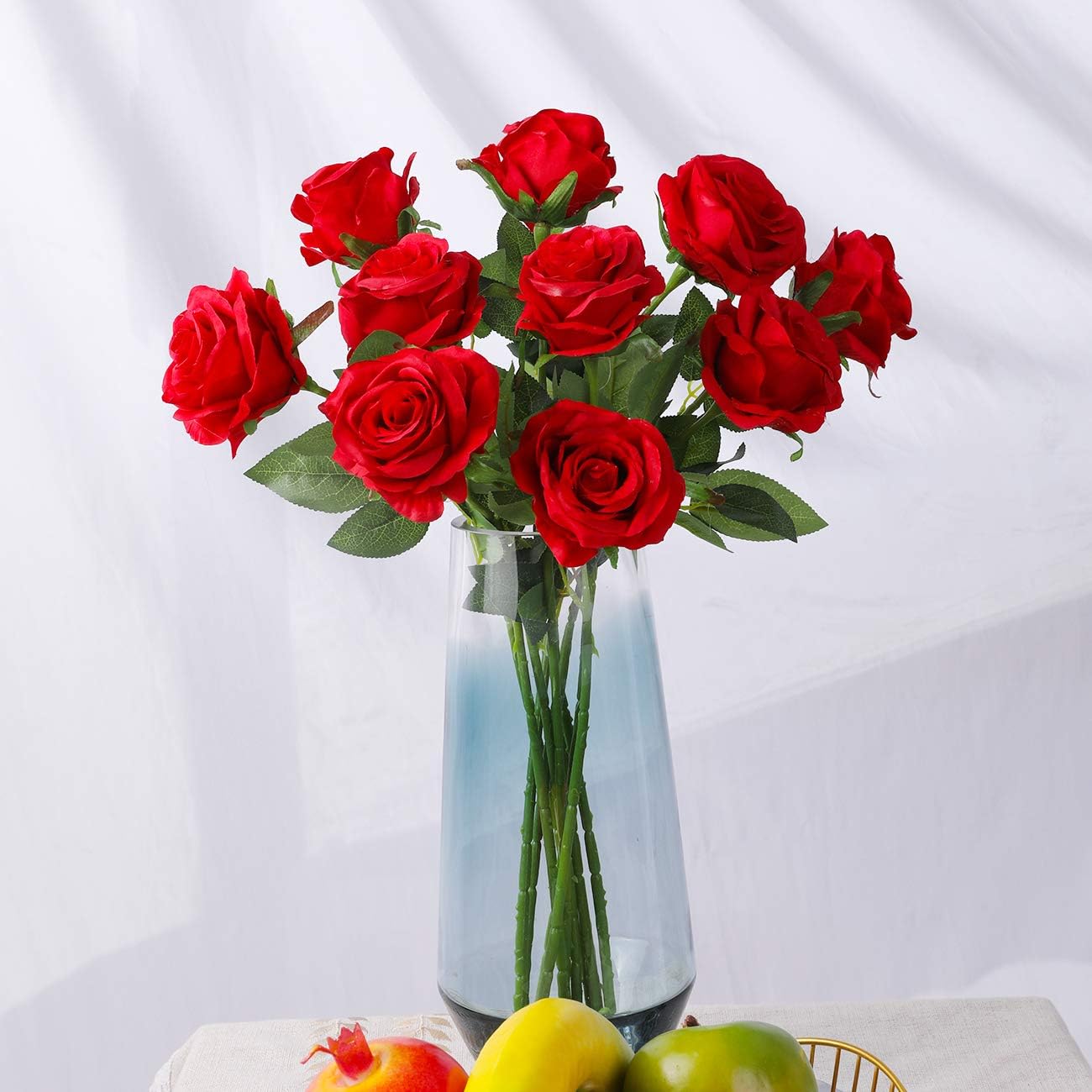 Veryhome 10 броя изкуствени рози, копринени цветя, фалшиви цветя, сватбен букет, за дома, градината, рожден ден, декорация за дома/сватбата