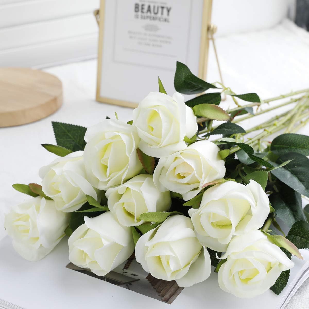 Veryhome 10 броя изкуствени рози, копринени цветя, фалшиви цветя, сватбен букет, за дома, градината, рожден ден, декорация за дома/сватбата