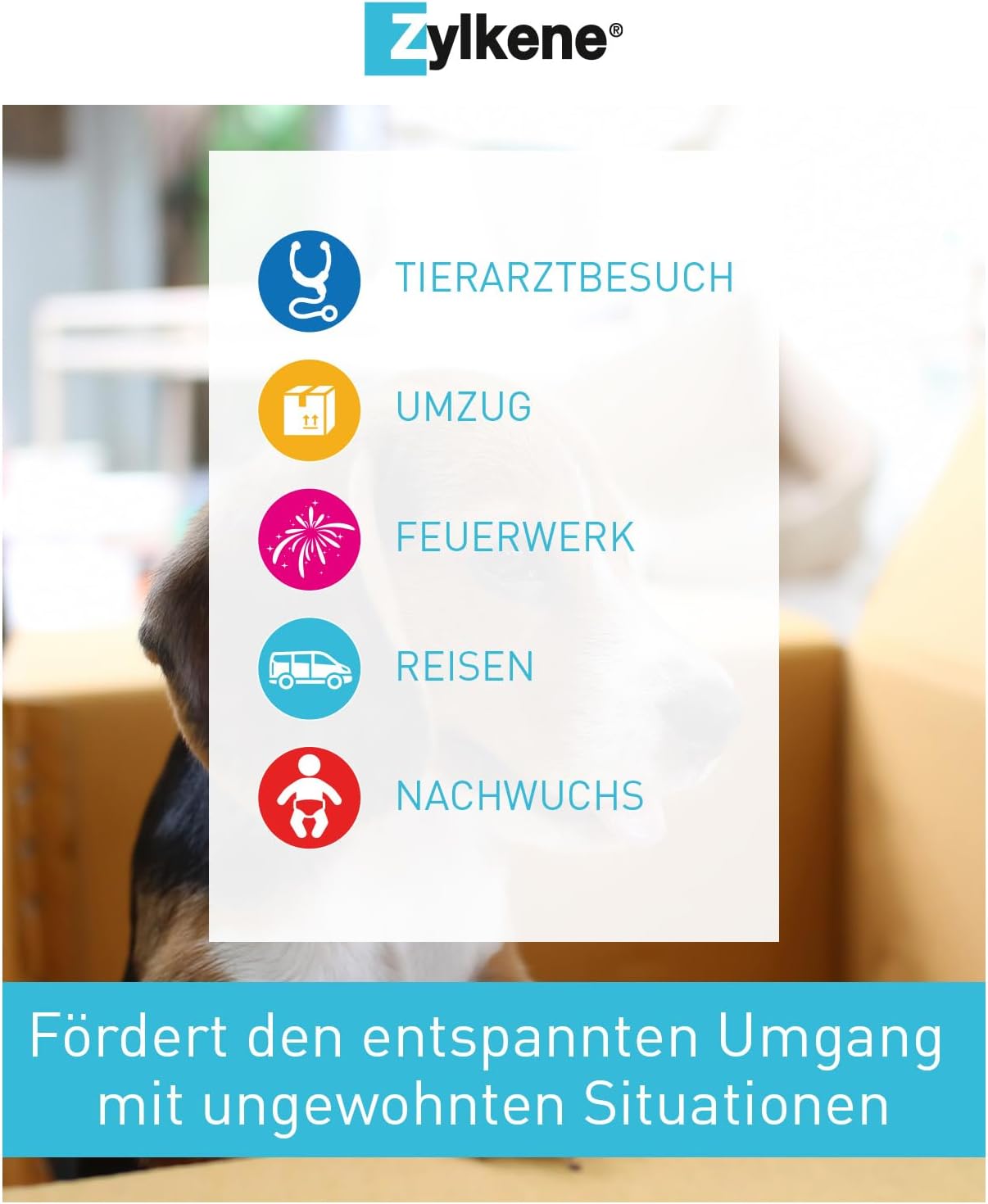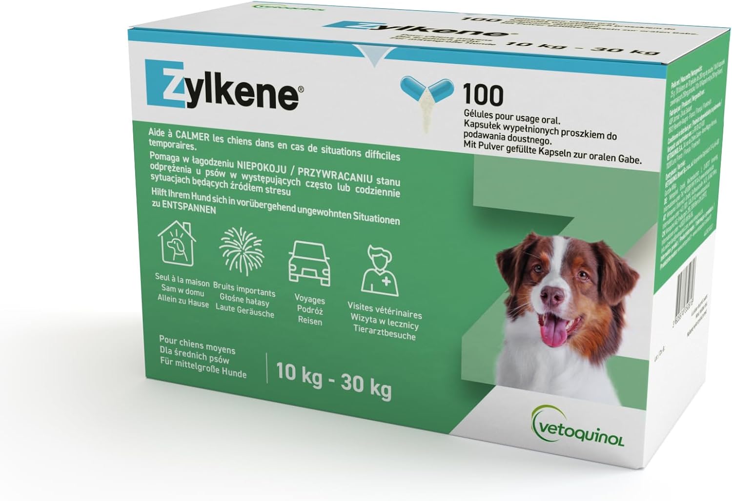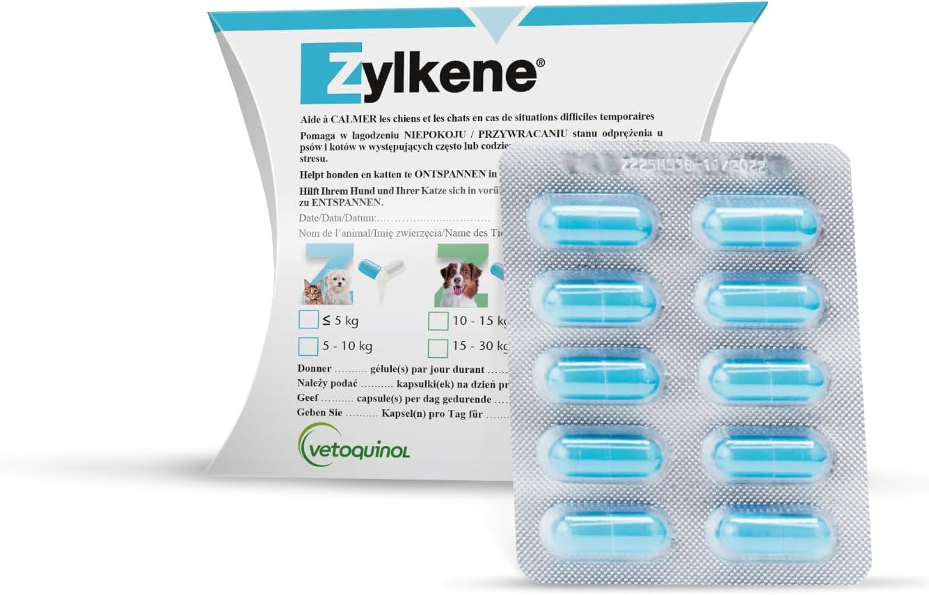Препоръчва се за кучета и котки, изложени на непознати ситуации или изправени пред предстоящи събития, като промени в околната среда, оставяне сами, нов член на семейството, смяна на грижещ се за домашен любимец, наличие на множество домашни любимци, лактация, отбиване, пътуване, фойерверки или всяка ситуация, която нарушава обичайната рутина на вашия домашен любимец. Zylkene не е заместител на балансираната диета. Zylkene 225 mg за кучета. Zylkene 225 mg: Сгъваема кутия, съдържаща 10 блистера по 10 капсули.