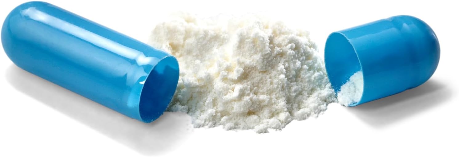Kasein (Trypsin-hydrolysiertes Rinder Kasein), Maltodextrin, Magnesiumstearat, Pulvergewicht pro Kapsel = 250 mg, Anteil Pulver: 76,9%, Anteil Kapsel (Gelatine aus Rinderhaut) 23,1%. Analytische Bestandteile: Rohprotein 75%, Rohasche 10,5%, Feuchtigkeit 8%, Rohfett 2%, Rohfaser 0%.