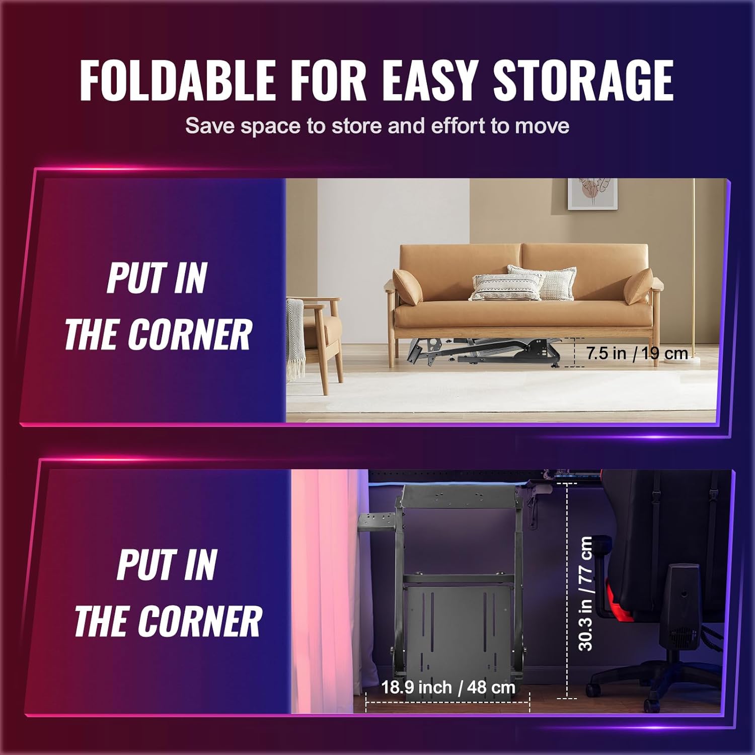 VEVOR Logitech G25 G27 G920 Сгъваема стойка за волан без педали Симулатор за шосеен велосипед Симулатор за шофиране Кокпит Стойка за геймърска екипировка PS3 PS4 Xbox Стол не е включен