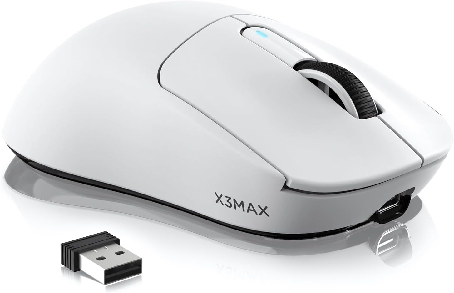 • Три режима на свързване: За разлика от кабелните мишки, безжичната мишка X3 предлага три различни режима на свързване. Изберете между режим без забавяне на 2.4 GHz за светкавично бърза работа, изцяло новия Bluetooth 5.2 за безпроблемно сдвояване с телефони, таблети и други устройства или играйте в кабелен режим с ултра-гъвкавия кабел за зареждане. В комплекта е включен 1.6-метров паракордов кабел.