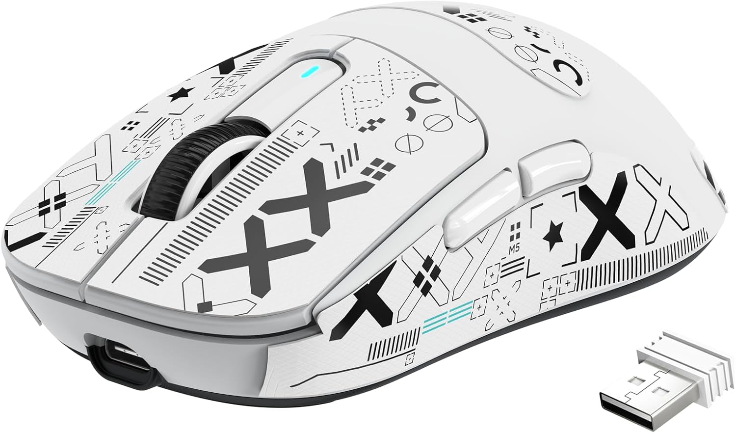 • 100% чист PTFE и супер дълъг живот на батерията: тези първокласни крачета за мишка, изработени от PTFE без добавки, са изключително издръжливи и осигуряват на мишката ви най-трайното плъзгане, като същевременно осигуряват по-добра производителност при спиране. Благодарение на микроконтролера Broadcom и отличното енергийно решение, безжичната геймърска мишка X3 може да осигури до 200 часа време за игра, еквивалентно на цяла седмица игра с едно зареждане.