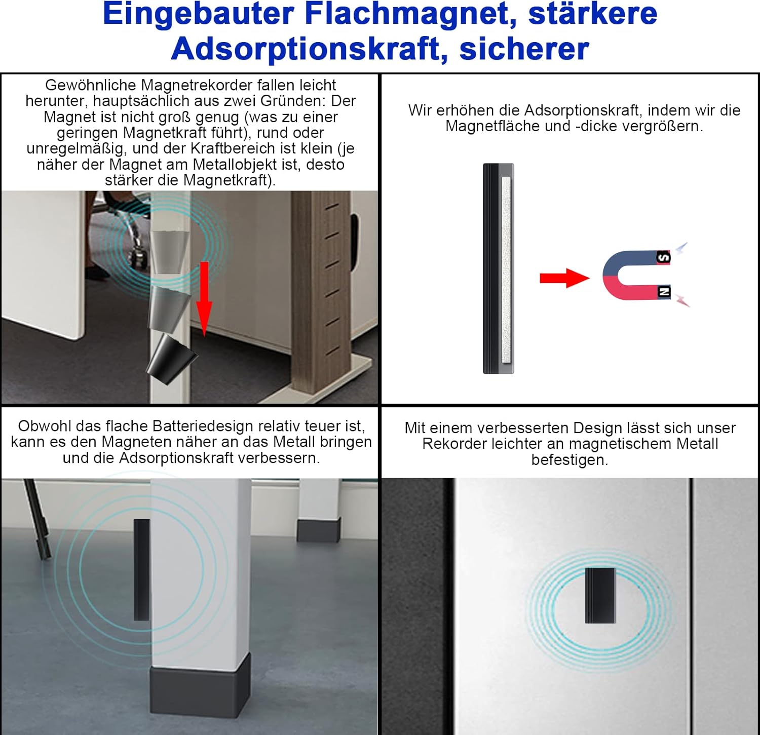 Диктофонът има вграден магнит и потребителите могат да го прикрепят към магнитен метал за лесно записване.