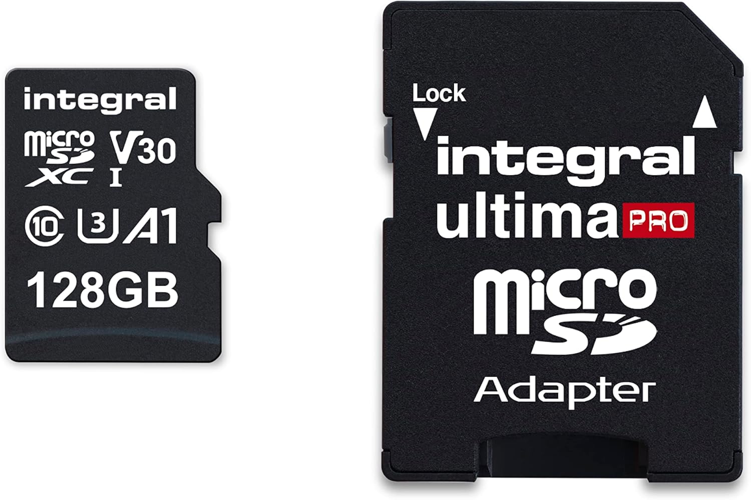 • Интегрална UltimaPro карта памет 64GB microSDHC/100MB/s/Class 10 UHS-I U3/V30 + адаптер