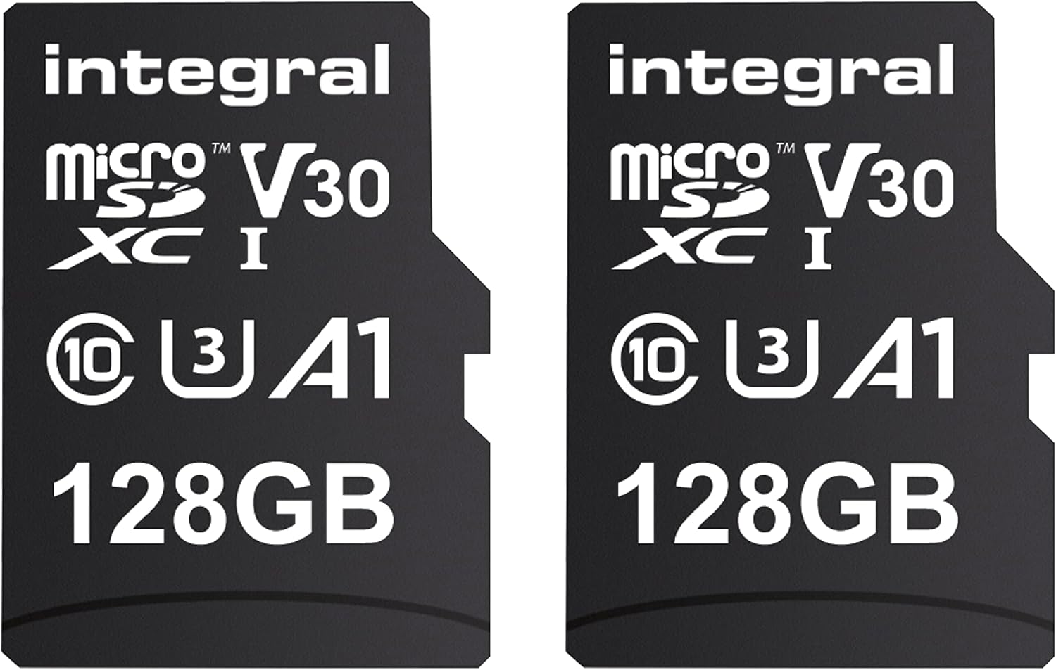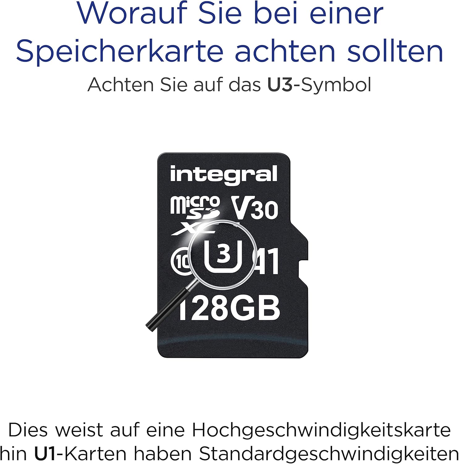 Вградена 128GB Micro SD карта с 2 слота, 4K видео, първокласна високоскоростна карта памет SDXC с до 100MB/s скорост на четене и 50MB/s скорост на запис V30 C10 U3 UHS-I A1