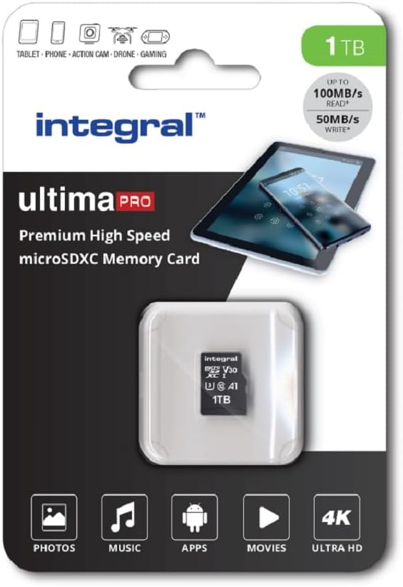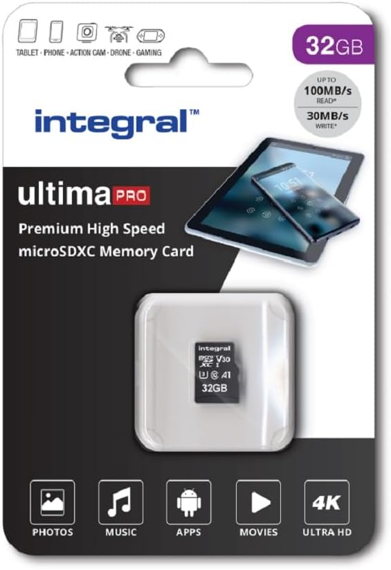 • Интегрална UltimaPro карта памет 64GB microSDHC/100MB/s/Class 10 UHS-I U3/V30 + адаптер