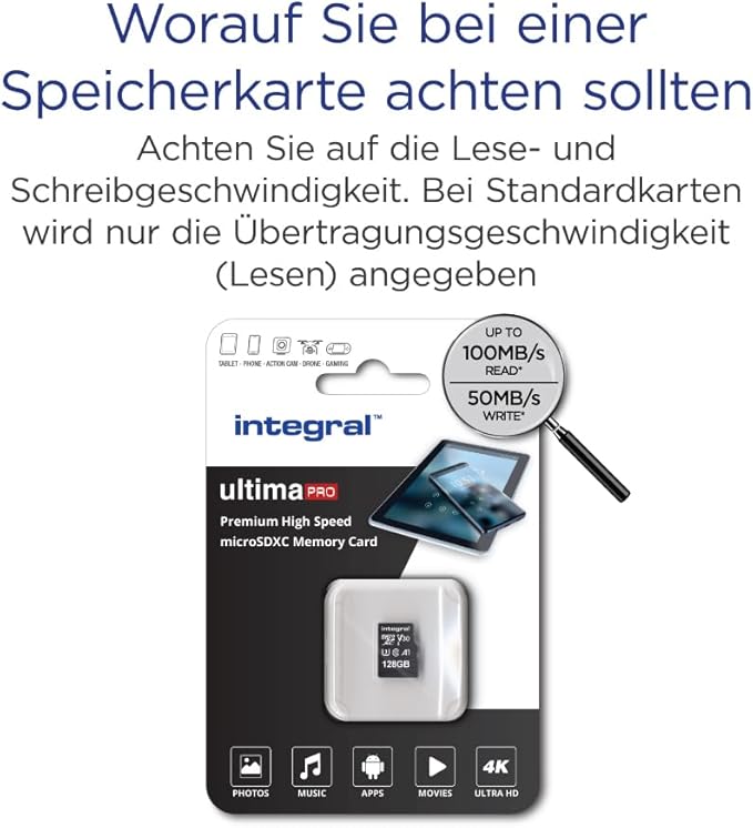 Вградена 128GB първокласна високоскоростна Micro SD (microSDXC) карта памет V30 UHS-I U3 до 100MB/s