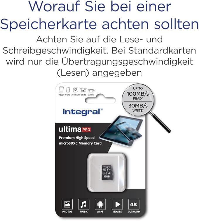 Вградена 32GB първокласна високоскоростна Micro SD (microSDHC) карта памет до 100MB/s V30 UHS-I U3