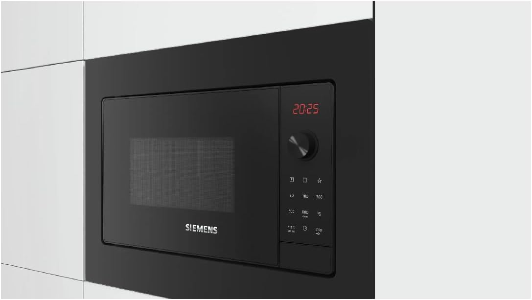 • Открийте многофункционалността на вградените микровълнови фурни Siemens: с 5 нива на мощност на микровълните до 900 вата и вградена функция за грил с 1,2 kW, това устройство предлага гъвкавост и мощност за всяко ястие, независимо дали става въпрос за претопляне или печене на грил.