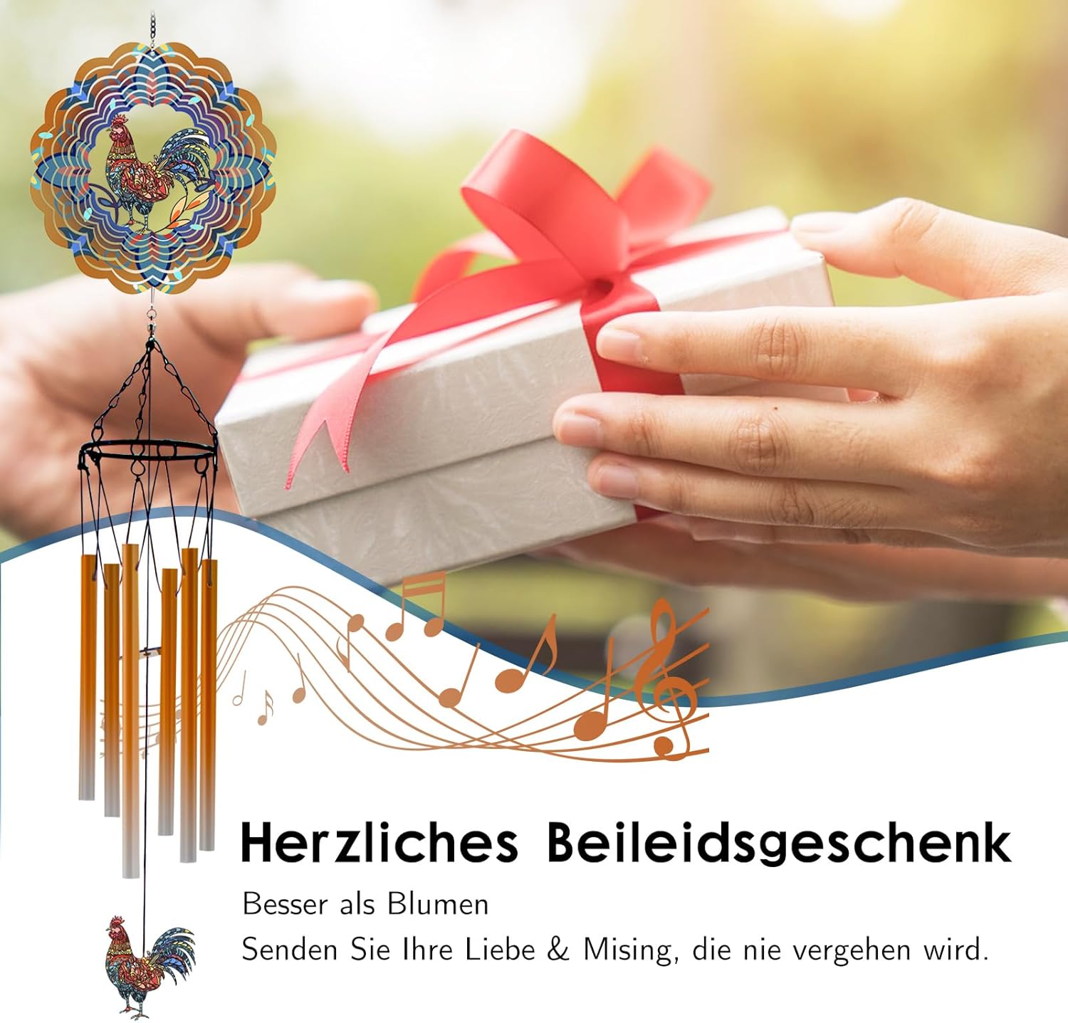• 【Външни вятърни камбанки】Ярките цветове символизират жизненост и щастие. Камбанката от неръждаема стомана с огледално покритие се върти на слънчевата светлина, създавайки ослепителен ефект.
