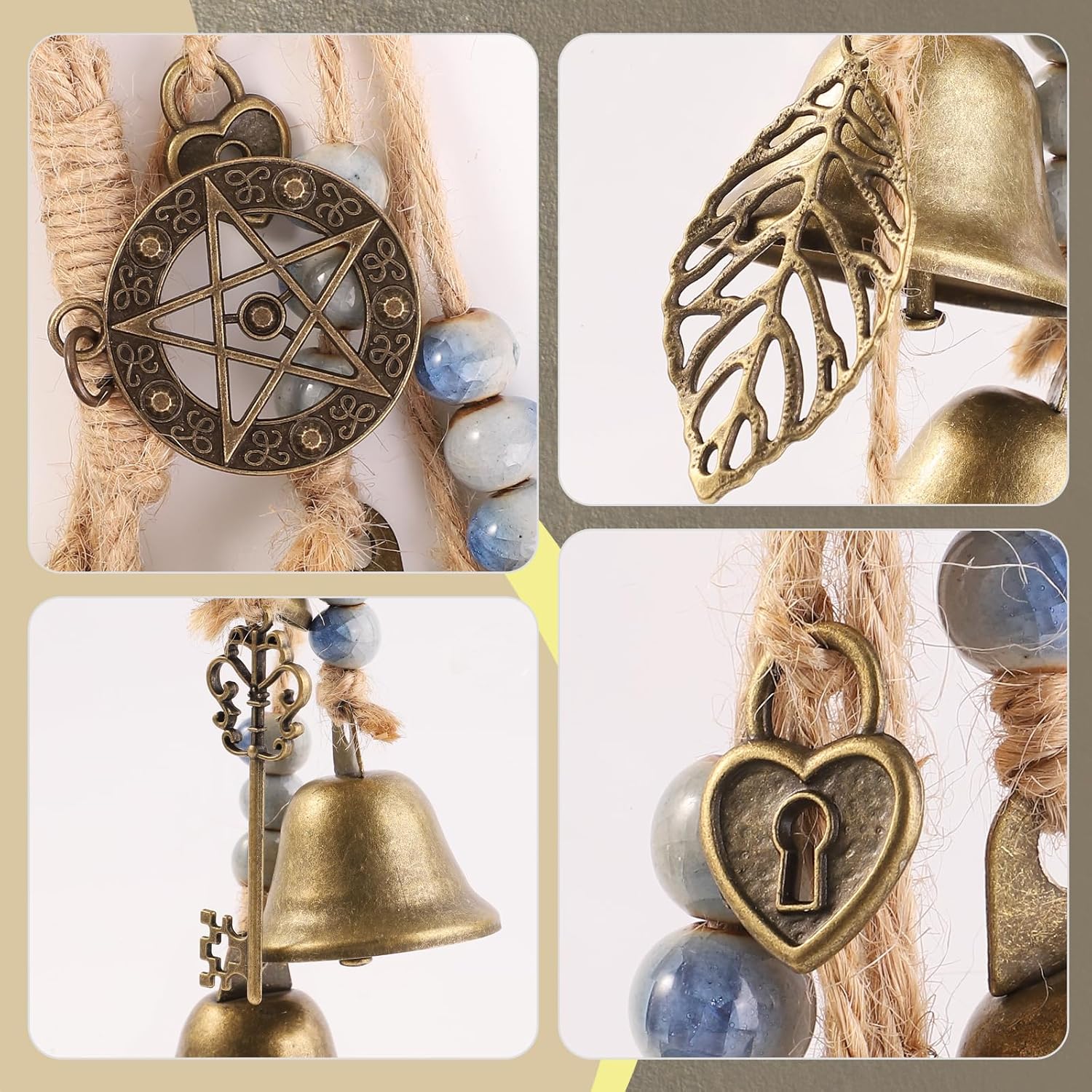 • 【Вещерска камбанка】Вещерската камбанка е изработена от камбанки, конопено въже, керамични мъниста и други елементи. Тя има красив външен вид и отлична изработка. Тя е идеална декорация за дома.
