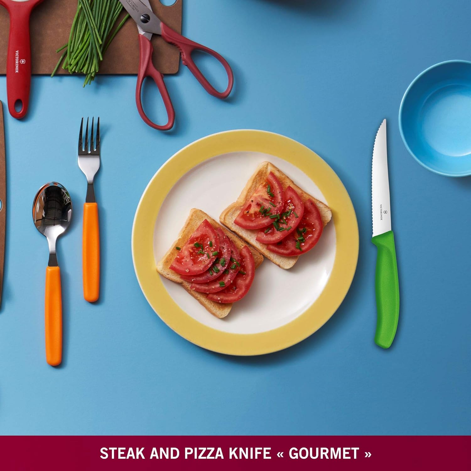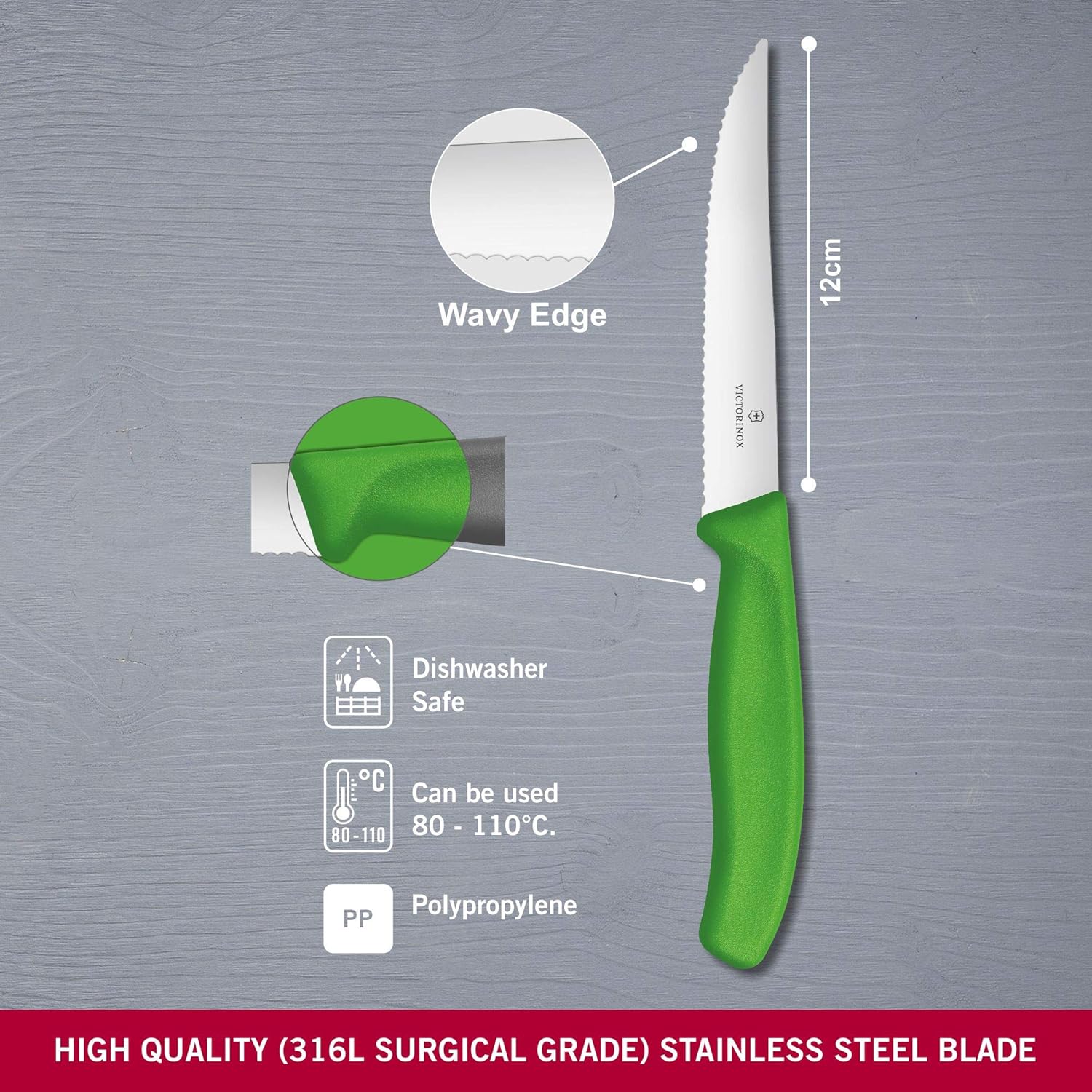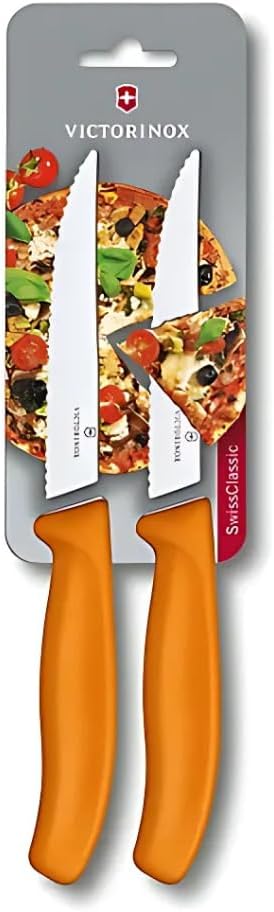 Victorinox Swiss Classic, Комплект ножове за пица и стек, 2 части, Изключително остро острие, Назъбен ръб, 11 см, Пластмасова дръжка, Неръждаема стомана, Зелен