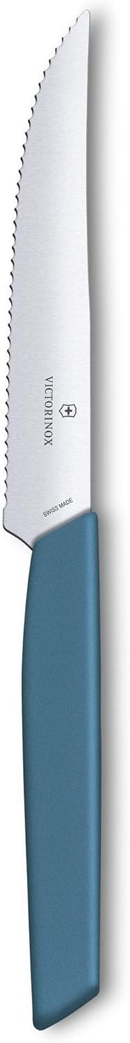 Victorinox Swiss Modern, Комплект професионални ножове за стек, 2 части, Изключително остро острие, Назъбен ръб, 12 см, Неръждаема стомана, Син