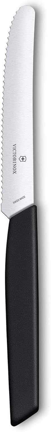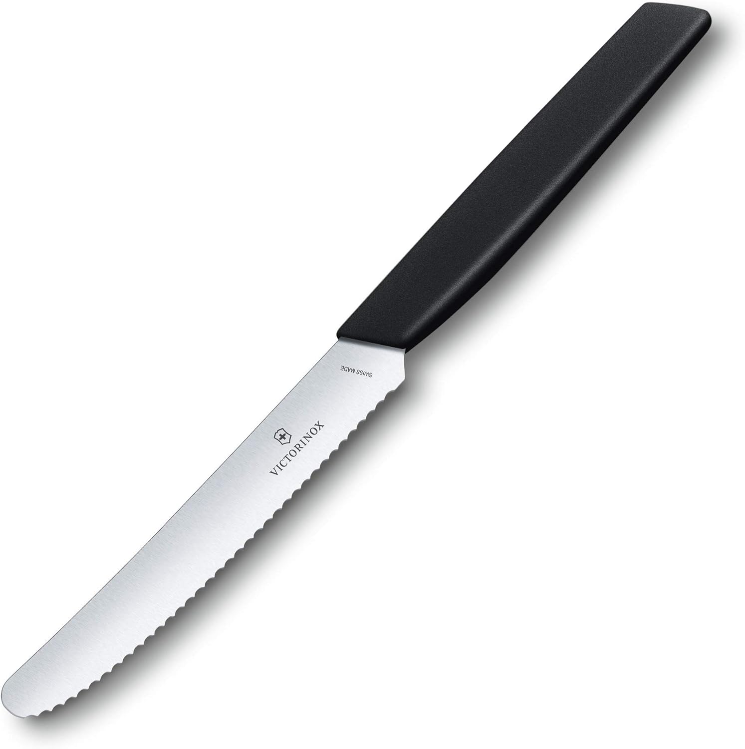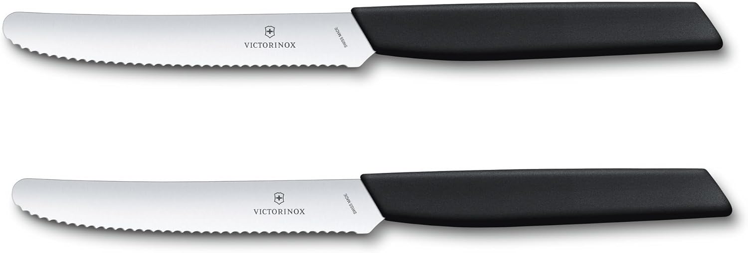 Victorinox Swiss Modern, Професионален комплект ножове за зеленчуци, 2 части, Нож за хляб, Изключително остро острие, Назъбен ръб, 11 см, Неръждаема стомана, Черен